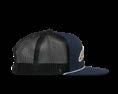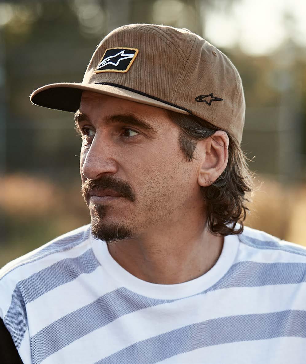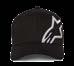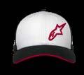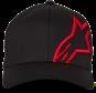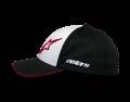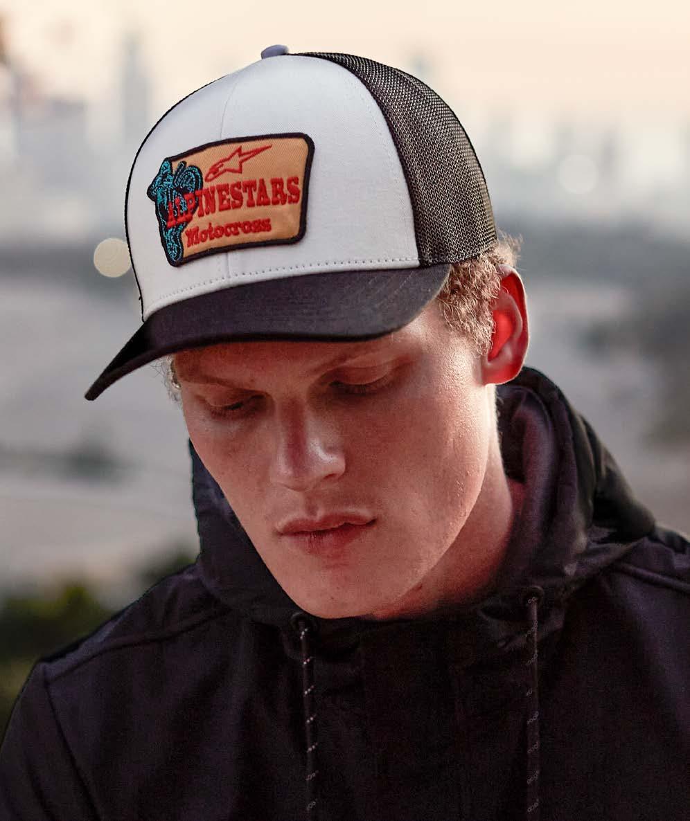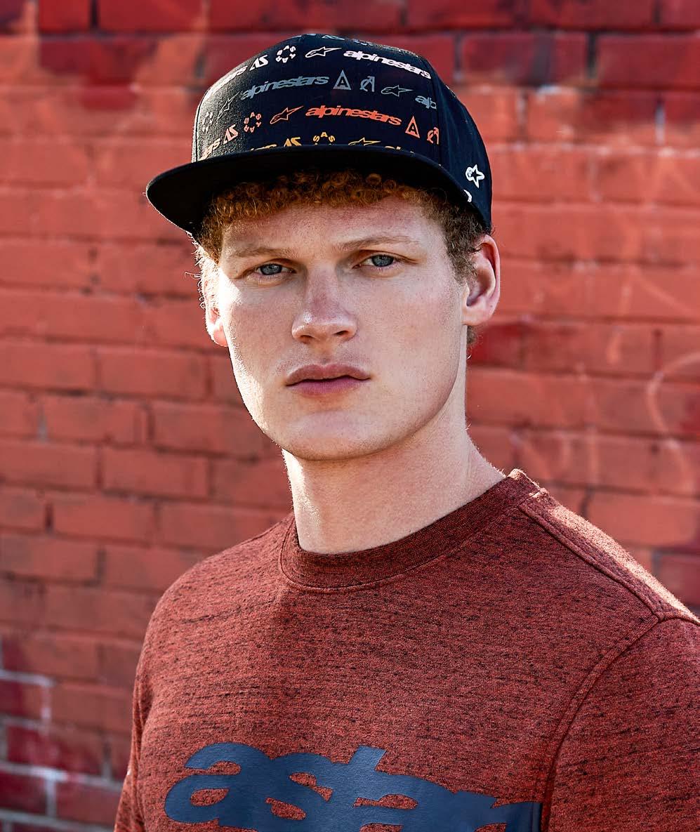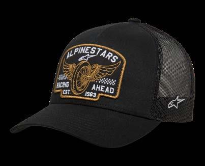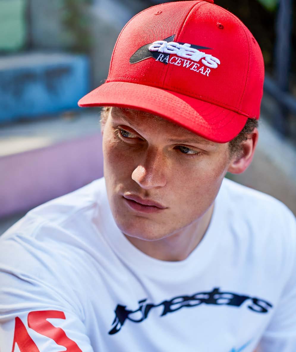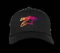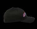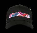 Stretch twill main fabric. Sandwich bill Front 3D embroidered logo, both sides Linear thick print Internal and back labeling Curved bill with structured crown Flex back