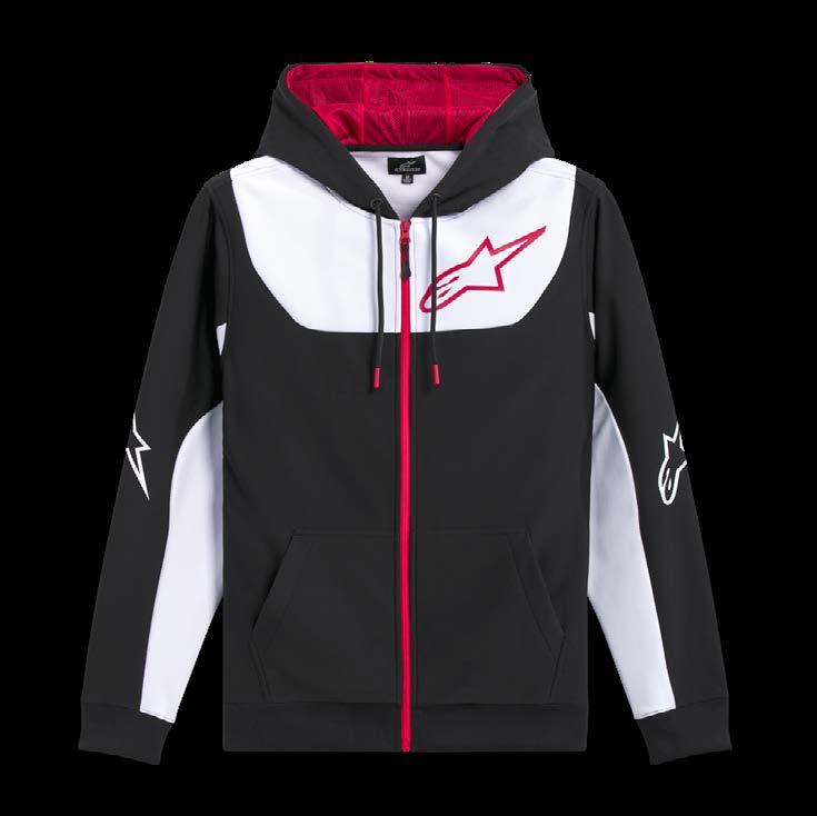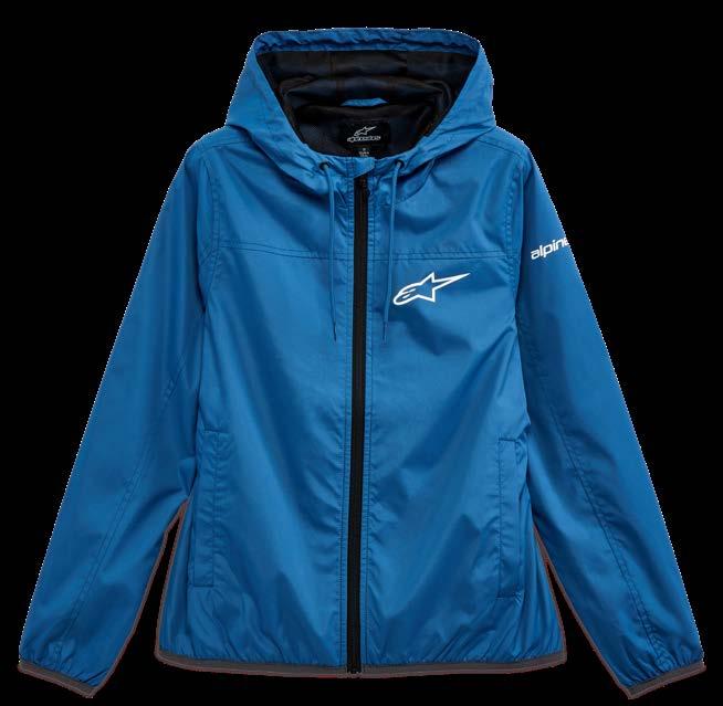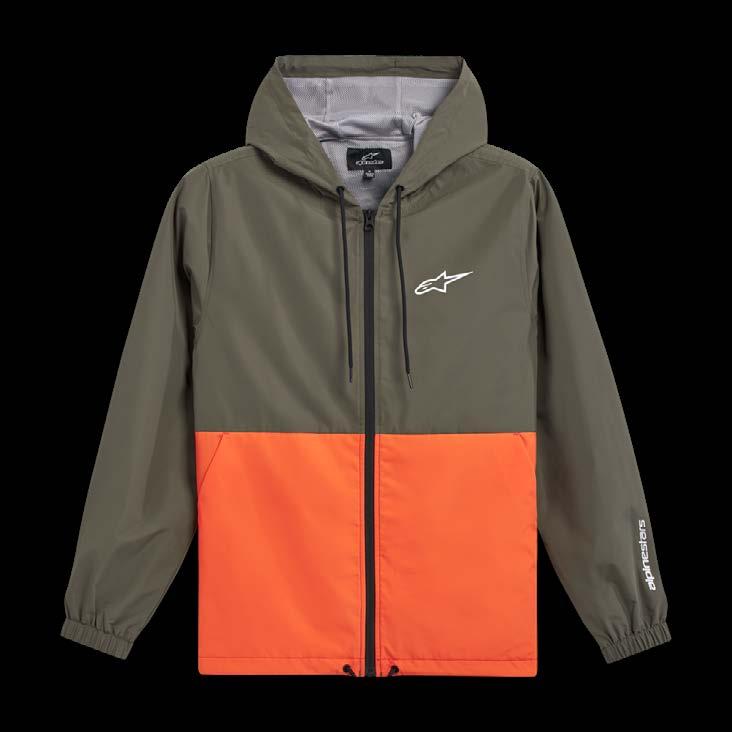 Mesh lined hood, tech drawcords, rib cuffs and hem