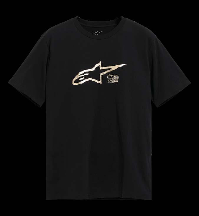Gold foil Ageless logo at chest, gold fiol wordmark at left sleeve