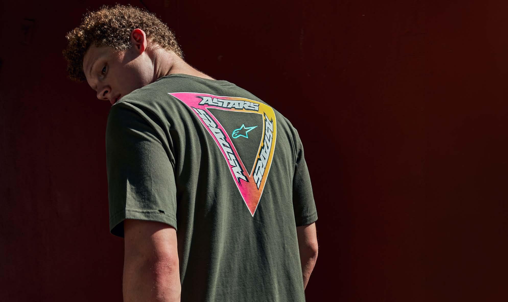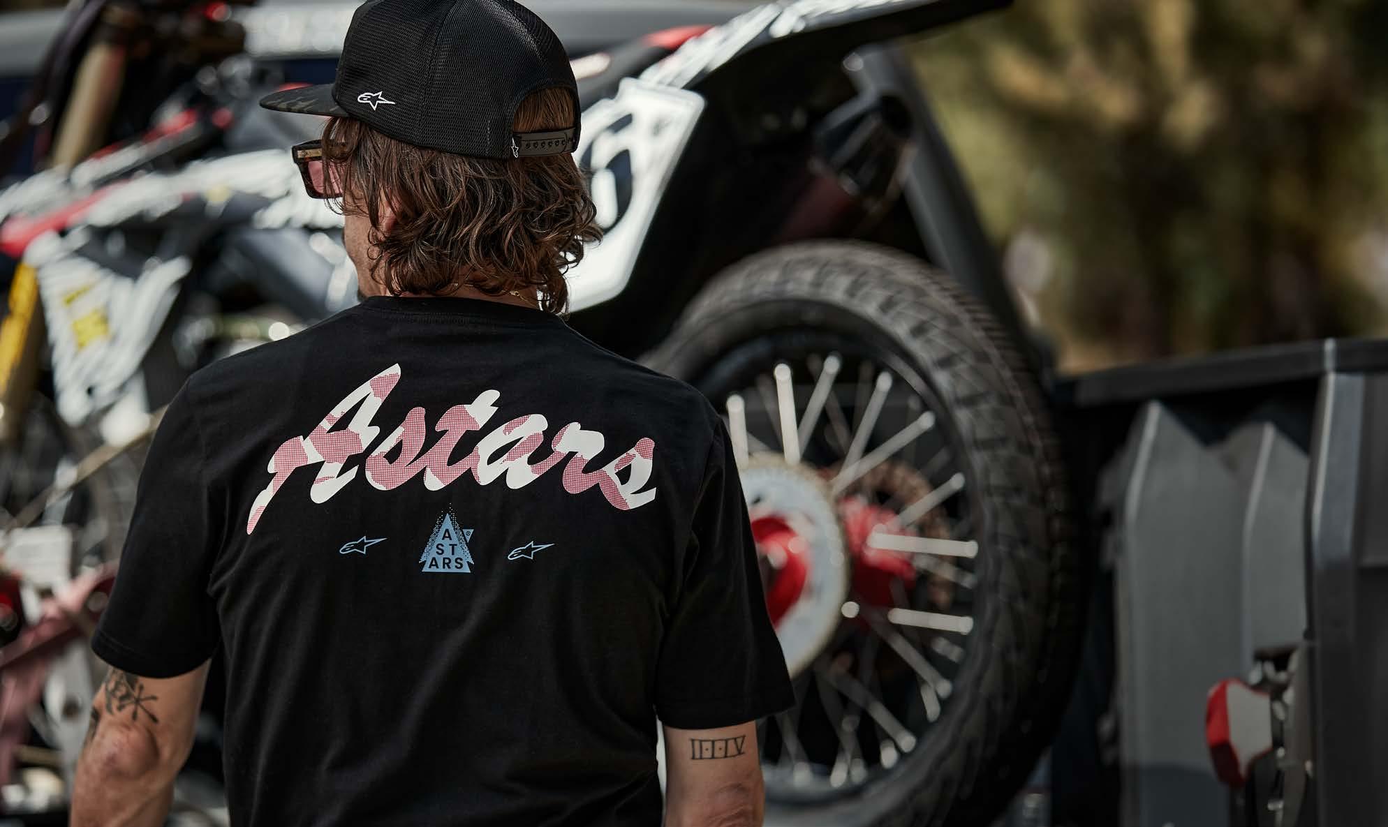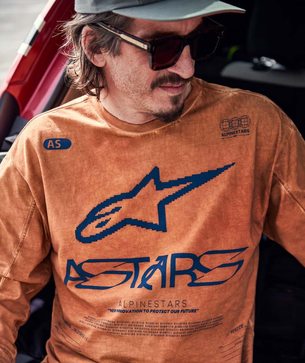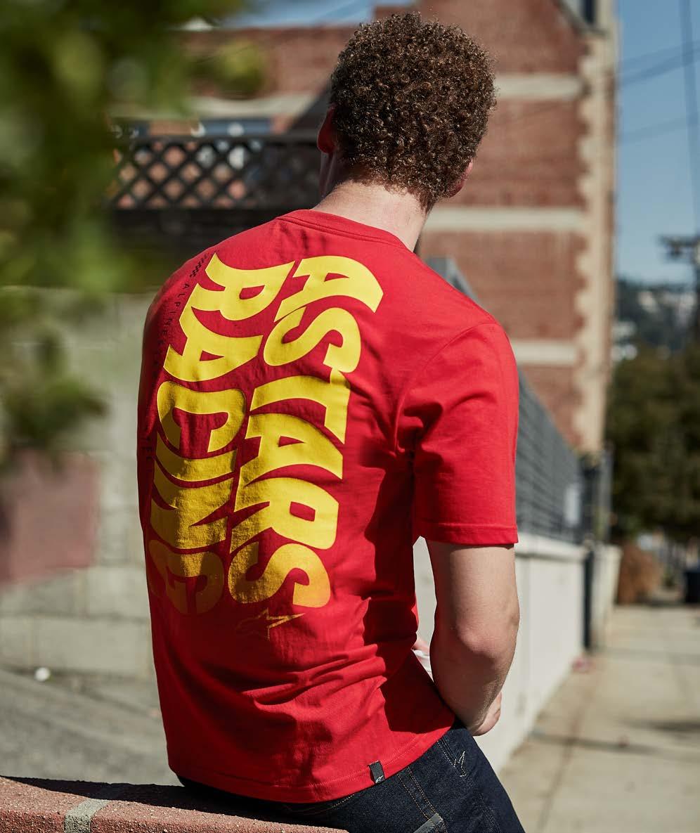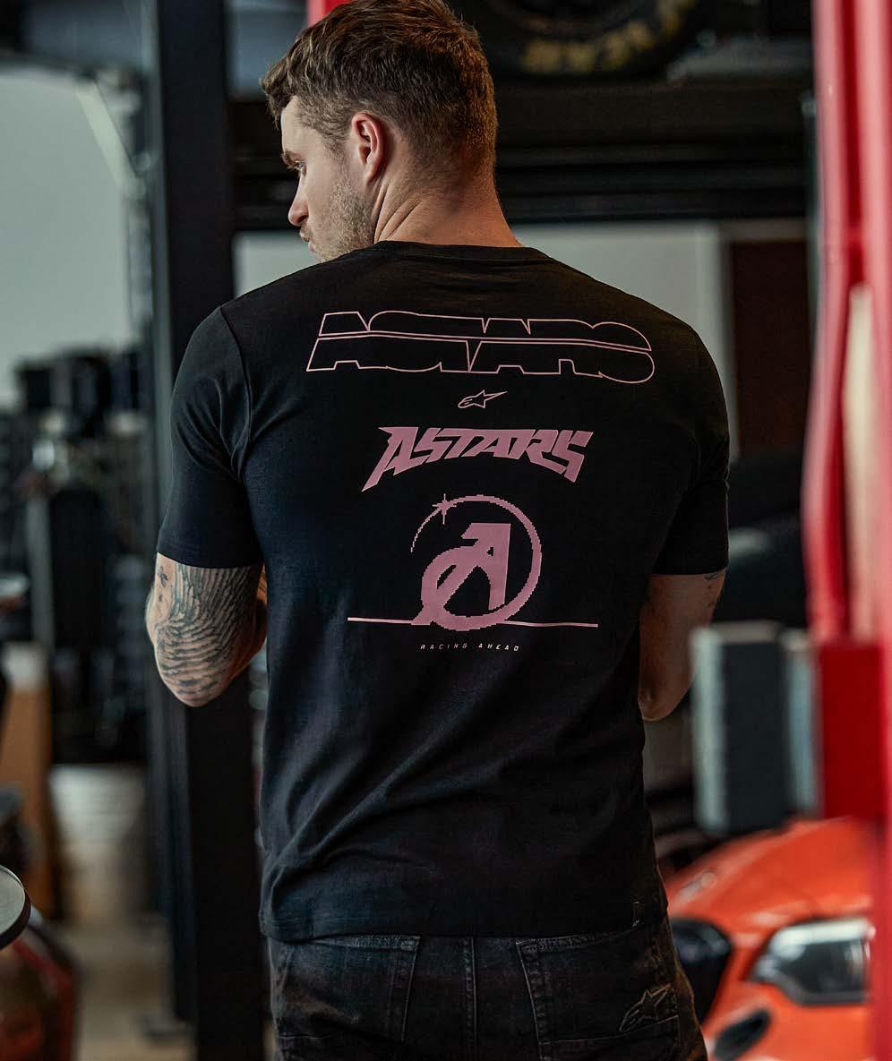 Arched Astars logo art print at upper chest, with sleeve logos and forearm Astars prints