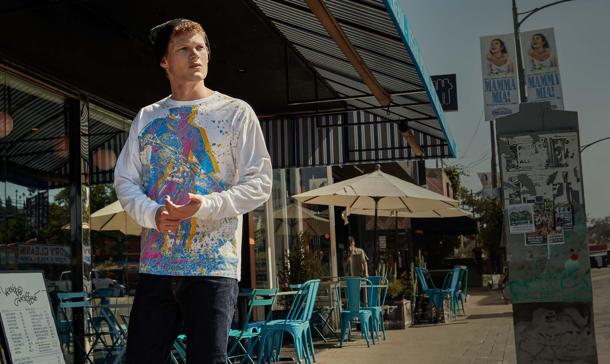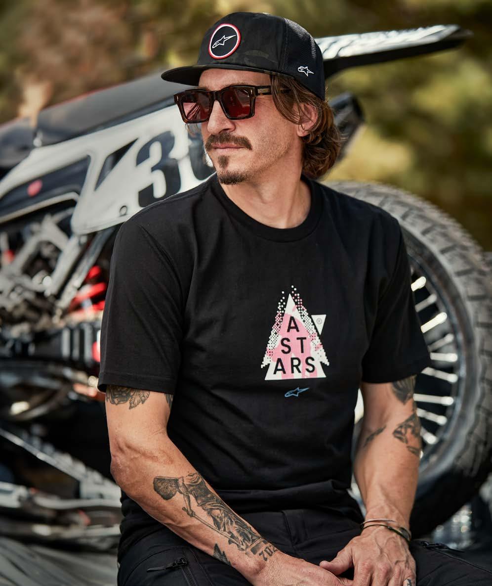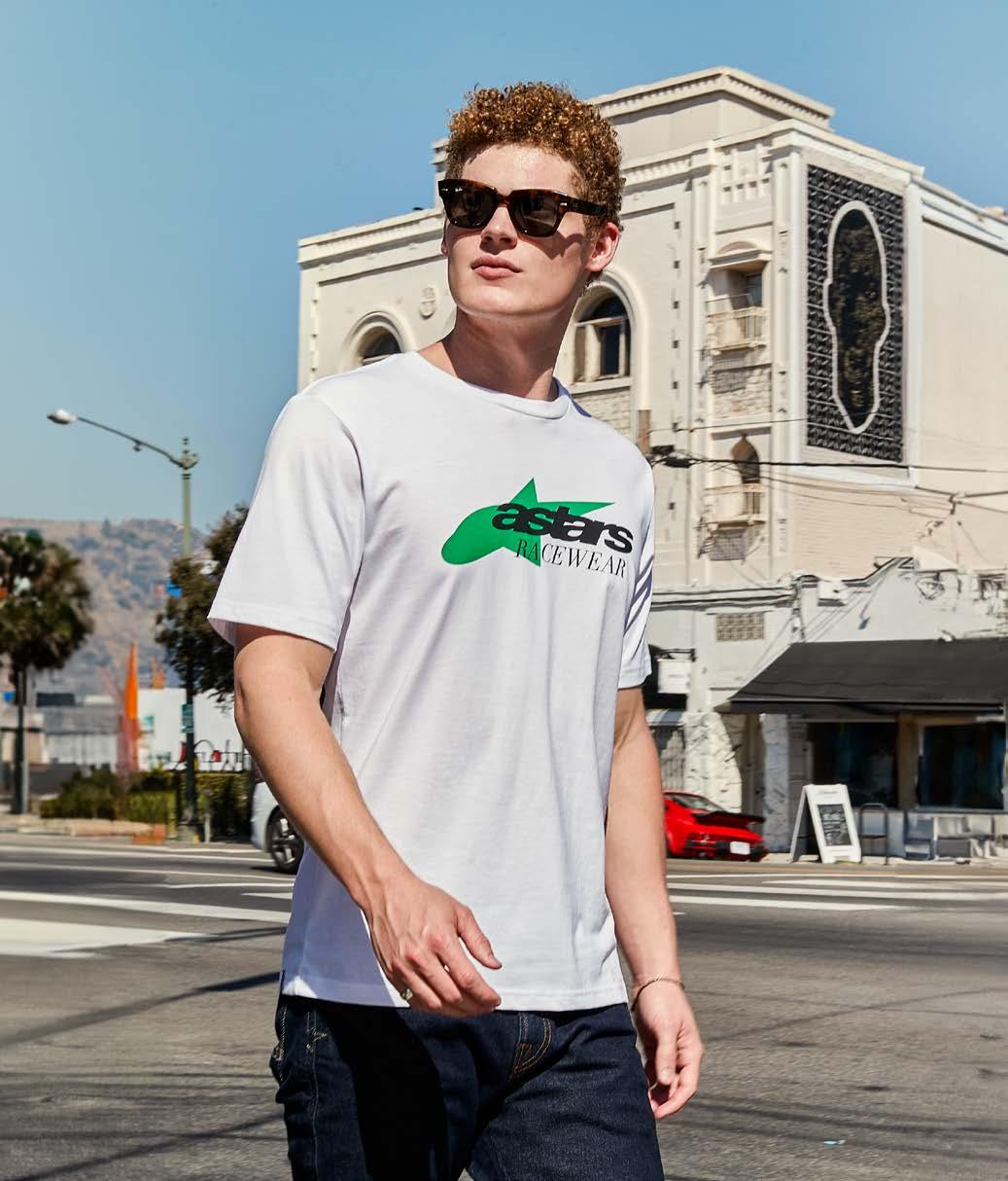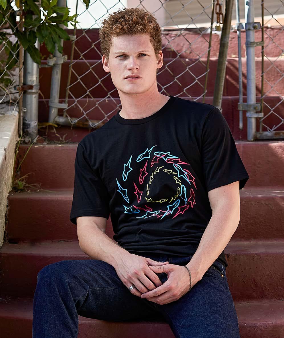 Arched Astars logo art print at upper chest, with sleeve logos and forearm Astars prints