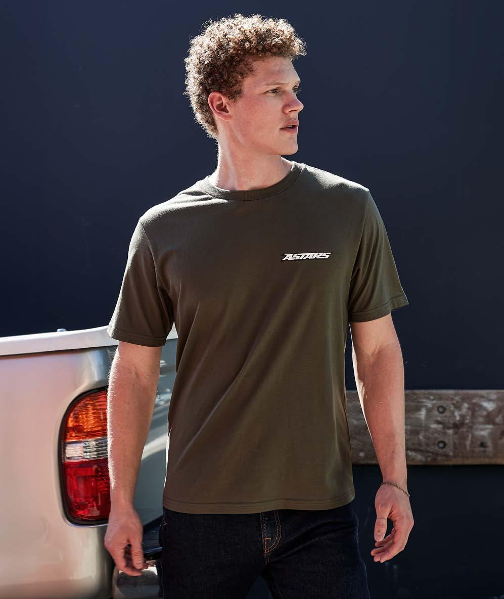 Embossed circle Astars word on chest. Logo prints at shoulder and back.