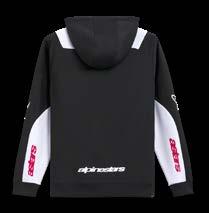 Jersey hood lining, dipped drawcord tips, rib cuffs and hem Internal main label and external label branding