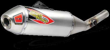 Ti-6 Pro Pro Circuit’s Ti-6 Pro Titanium Exhaust System was created for professional racers competing in a series such as AMA Supercross or AMA Motocross to ensure they pass AMA/FIM sound regulations. The TI-6 Pro is constructed of titanium throughout the head pipe, mid pipe, and canister while the end-cap is constructed of carbon fiber. An RC-4 Resonance Chamber (select models) and a machined aluminum muffler bracket for durability are also added. Asymmetrical muffler configuration for higher packing volume and a machined mid pipe to head pipe joint for a better fit are other features.