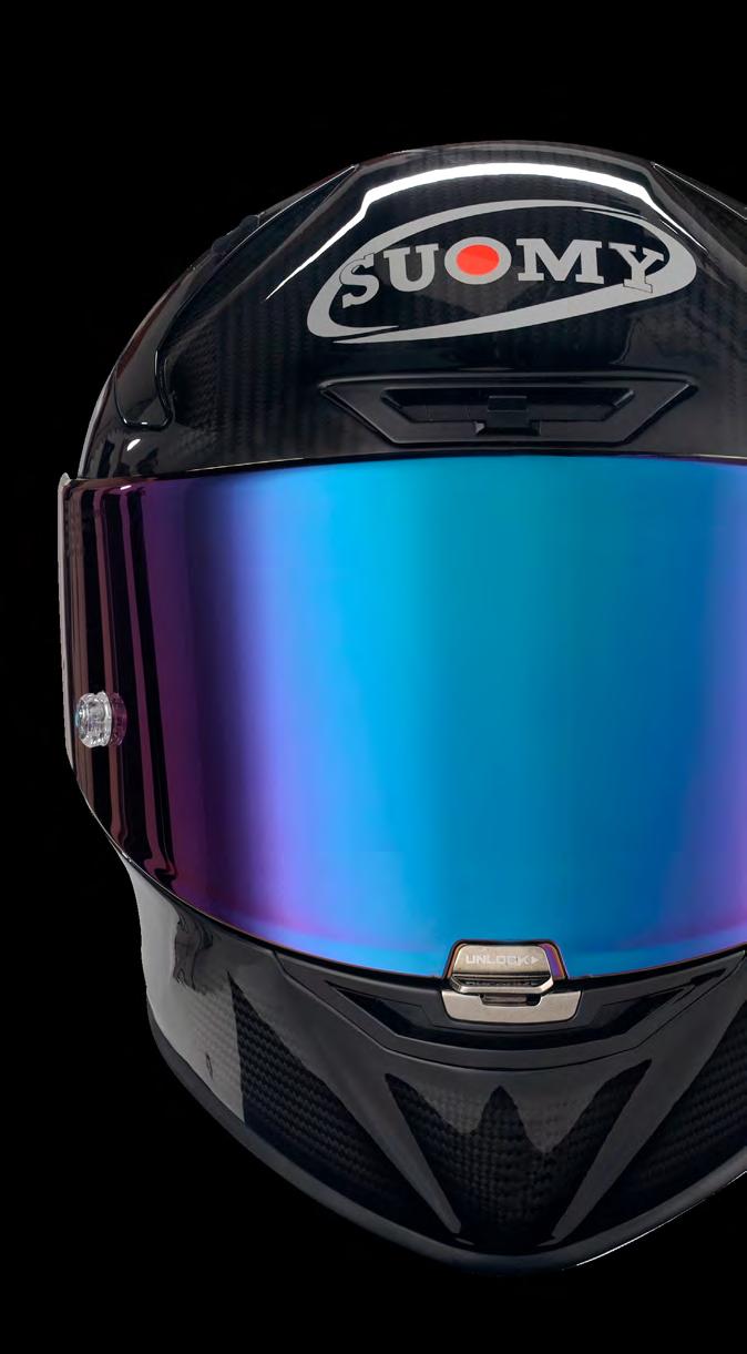 TX-PRO is the brand new latest generation SUOMY full face helmet derived from the racing world and made of TRICARBOCO (carbon-aramidic fibers-glass fibers) with a fine carbon in sight finishing. The fascinating and optimized shapes of the shellaretheresultofin-depthengineeringand aerodynamic studies aimed at guaranteeing an outstanding lightness and unparalleled dynamic behavior both on the road and on the track. The visor in optical class 1, the 90° vertical and 210° peripheral visibility are, as always, the enviable trademarks of Suomy.