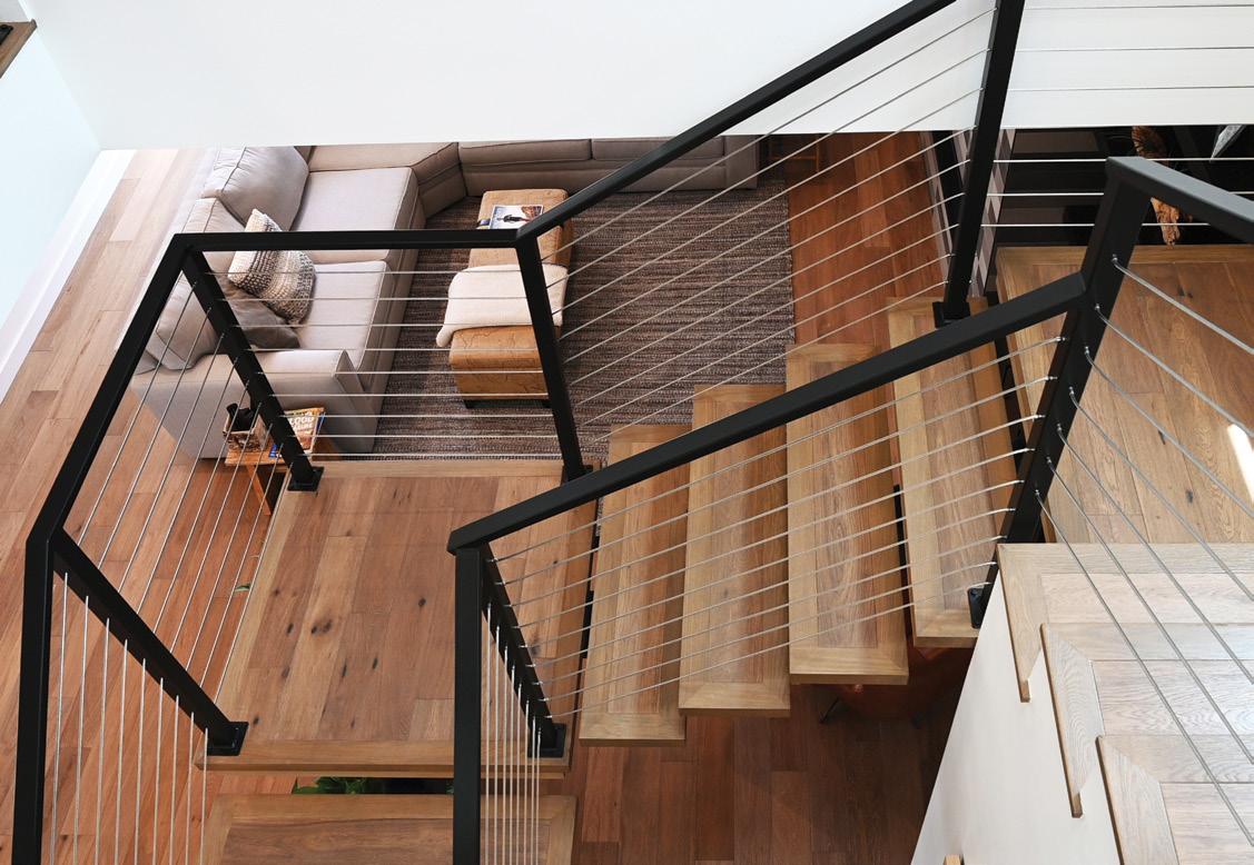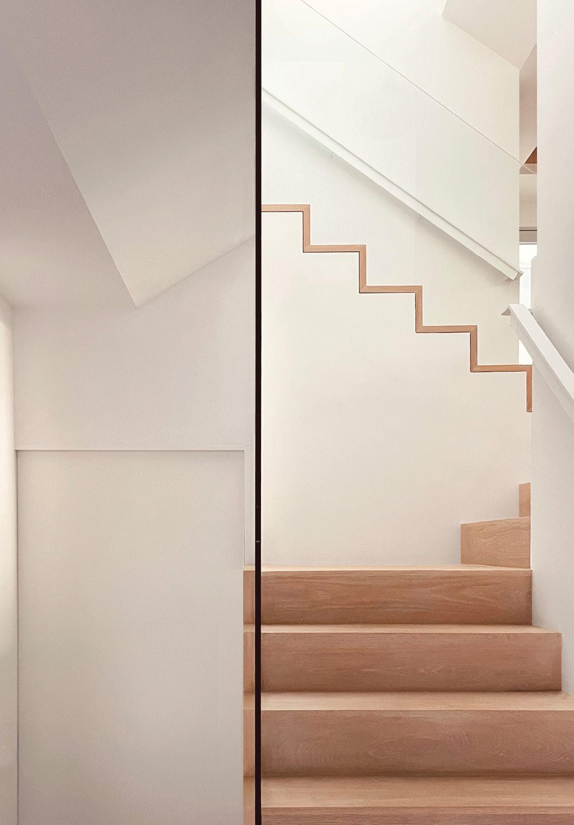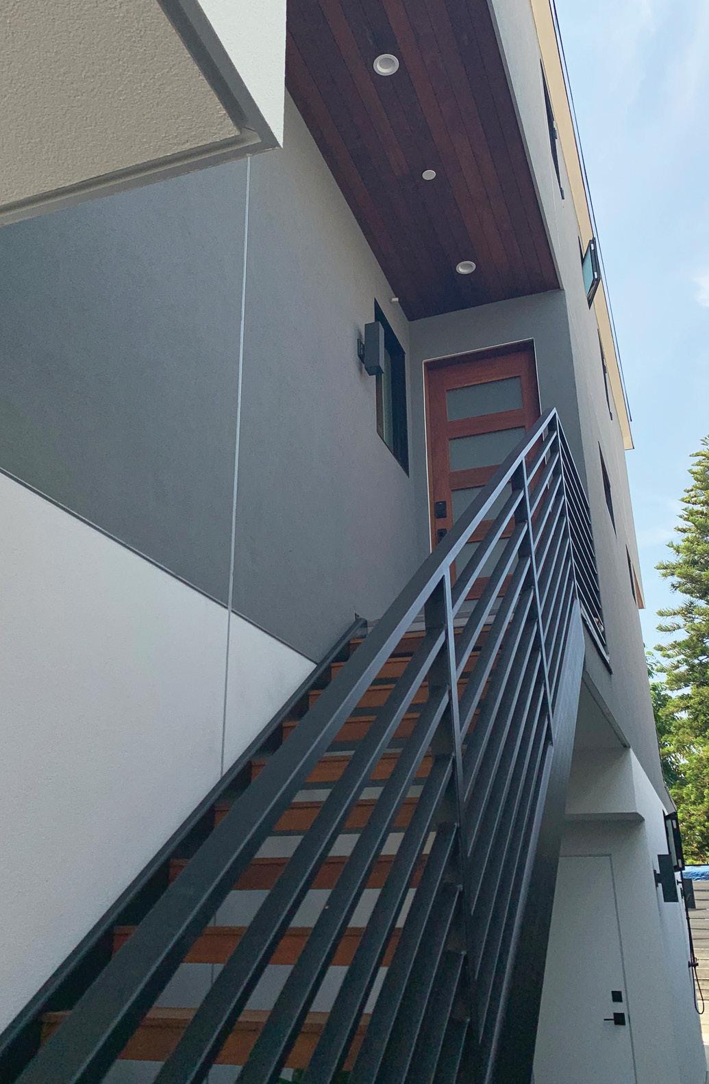 Extensive remodel of a ’60s era, two-unit residence on a half-lot in North Manhattan Beach. Our project began in the fall of 2019, working closely with the owners and city planning to rehab the existing structure while elevating a neglected corner lot property with thoughtful design choices. Essentially three disjointed levels, efforts focused on a series of new stair flights to reunite the floors and their new program elements. The stairwell, as the central design feature, was designed to collect natural daylight from above and softly diffuse it to spaces below.