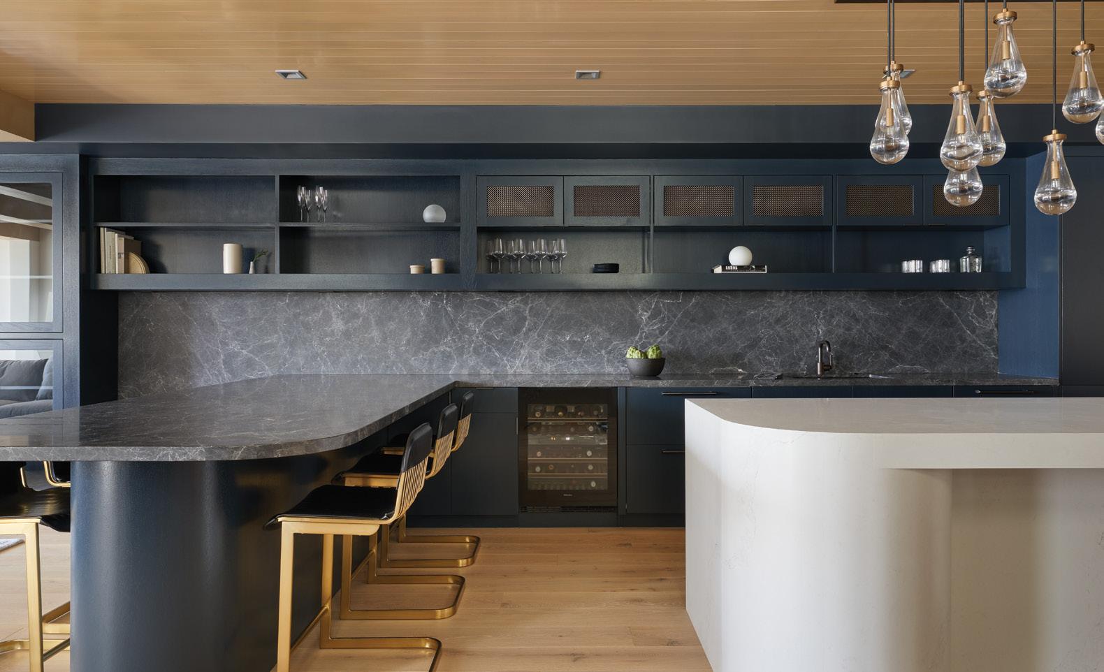 We see demand for items that are big on function and statement. Some clients opt for colored appliances in colors like yellow or black. Steam ovens, modular cooktops, 20,000 BTU wok burners and workstation sinks are all popular. To house their appliances, our clients are delighted to have appliance cabinets and hideaway coffee bars. For wine lovers, wine walls are an epitome of function and beauty.