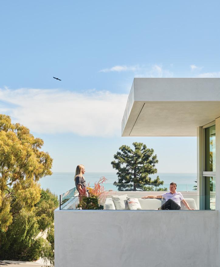 The original cubist form provides the framework for the project, which consists of strategic interior and exterior interventions. Additional square footage was discretely added without changing the scale of the home. The kitchen was expanded, and a dining area was added by filling in an underutilized rear patio. An existing crawl space was dug out and converted into habitable space, expanding the lower level living quarters. The previously compartmentalized upper level was opened up, maximizing the views of the Pacific.
