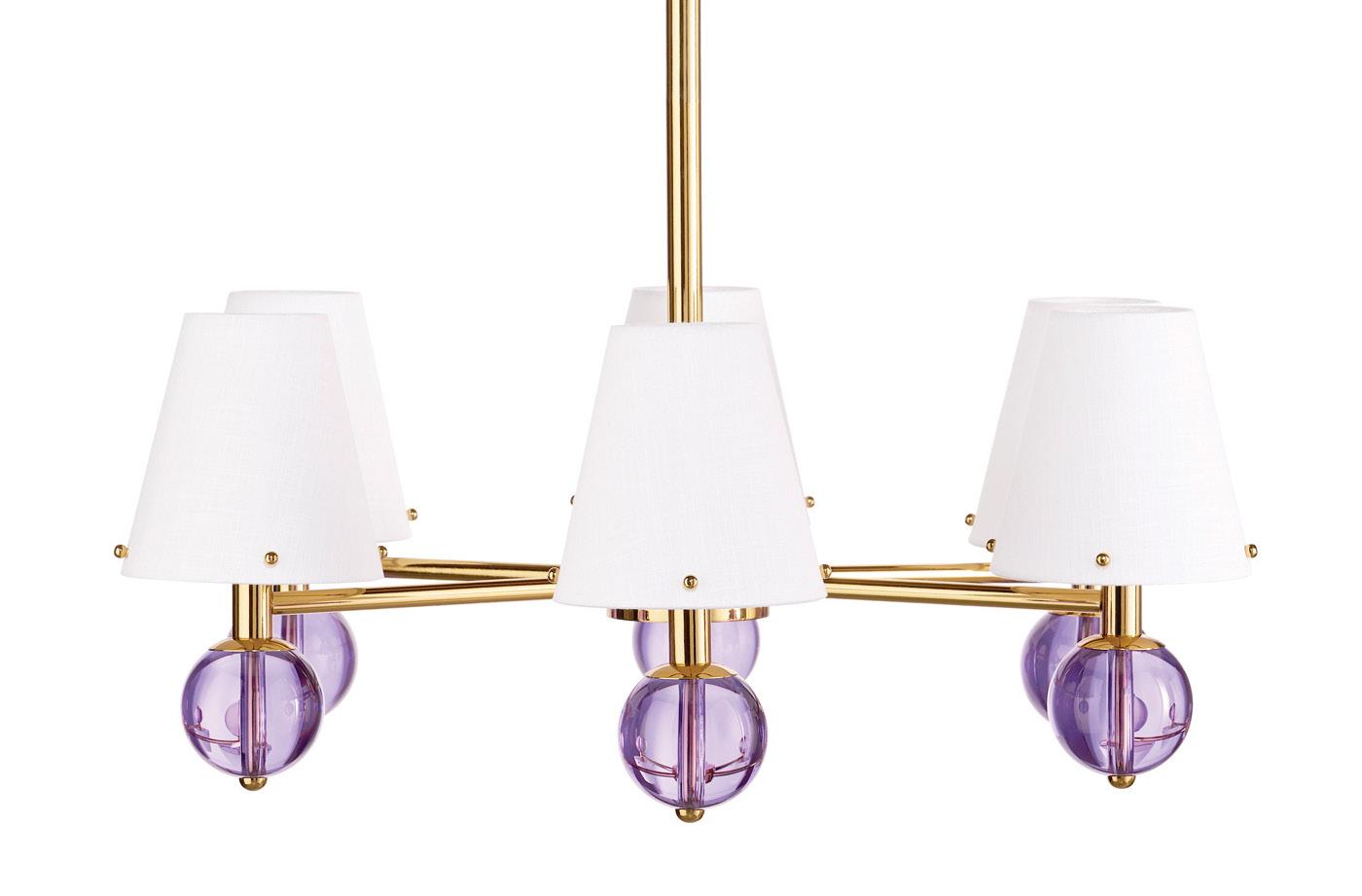 “I love to host parties and girls’ nights and wanted a comfy room that also looked chic—like a jewelry box almost—to entertain in with no TV or kid stuff and pretty things to look at when drinking margar itas,” explains Kim. “I imagined a space that was serene but also elevated with interesting shapes, materials and lighting. I had my eye on this Gabriel Scott fixture for a while and knew this was the perfect place to use it. It’s dramatic, gorgeous and interesting. I love how it all turned out because it feels special and a little fancy, but is also cozy.”