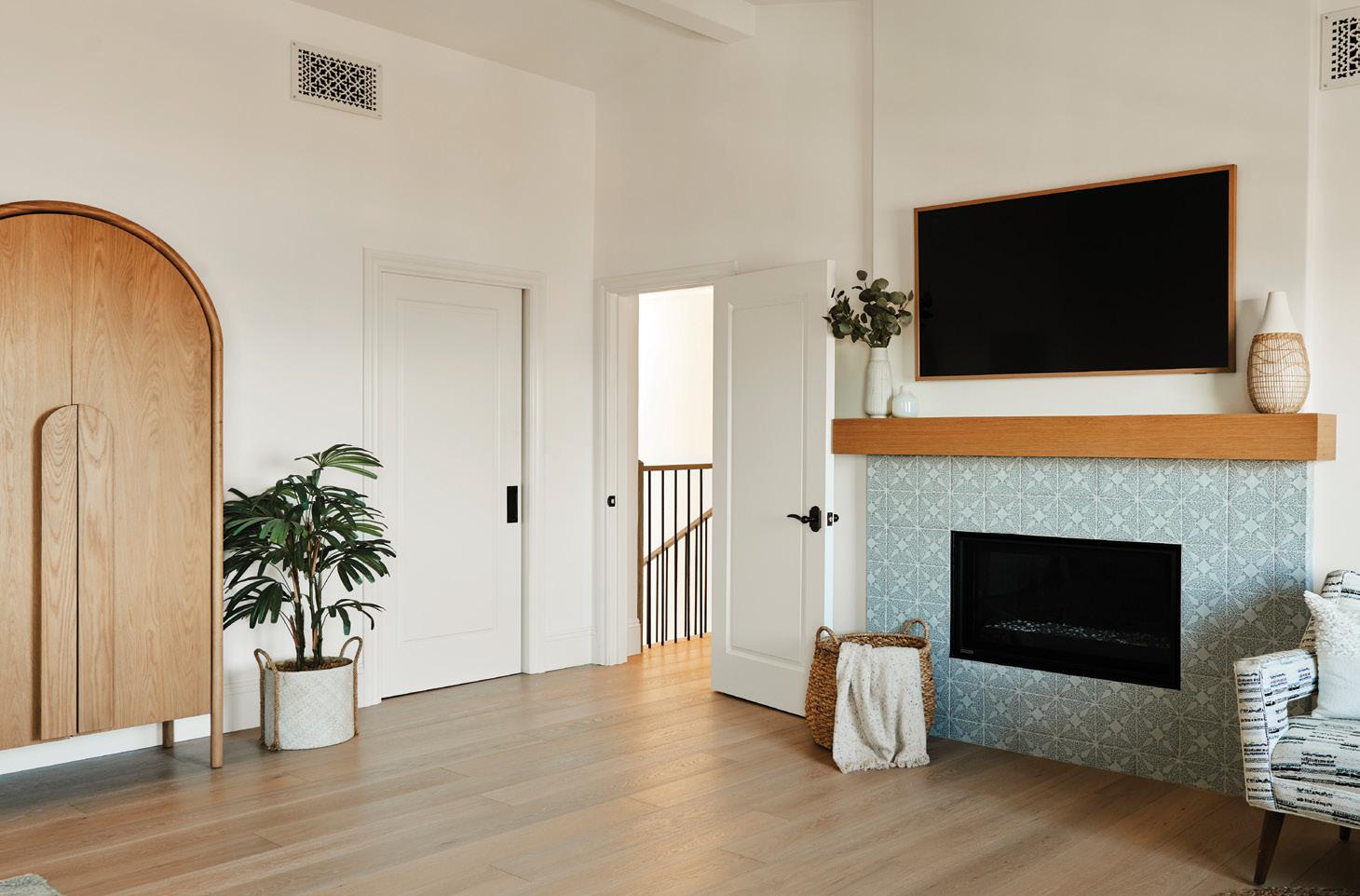 A new fireplace offers a cozy spot for the family to gather during cooler months. Adds Greg, “It’s a com fortable spot, and it makes the house feel much bigger. It keeps the house cooler too.” ¢