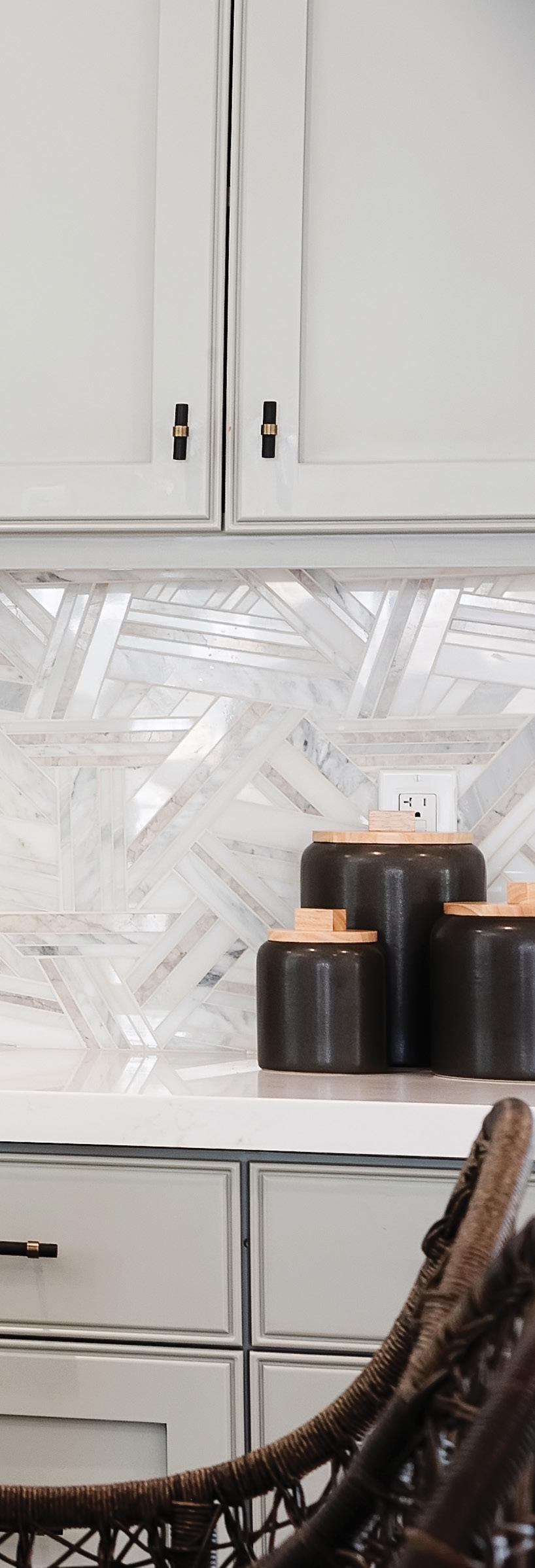 We are always looking for “wow factor” op portunities, whether it be a two-tone kitchen, a bold color combination or a special accessory that steals the room. Each project deserves something personalized to the space and homeowner. When clients trust our artistic vi sion, the outcome is stunning.