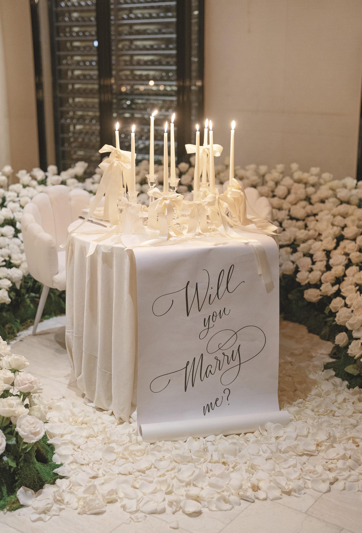 When the couple arrived at Terranea Resort to meet friends for brunch, a beautiful setup of Champagne, flowers and candles awaited their table with an ocean view. After the proposal, they returned to Natalie’s parents’ house, where the celebration continued with a surprise engagement party with family and friends.