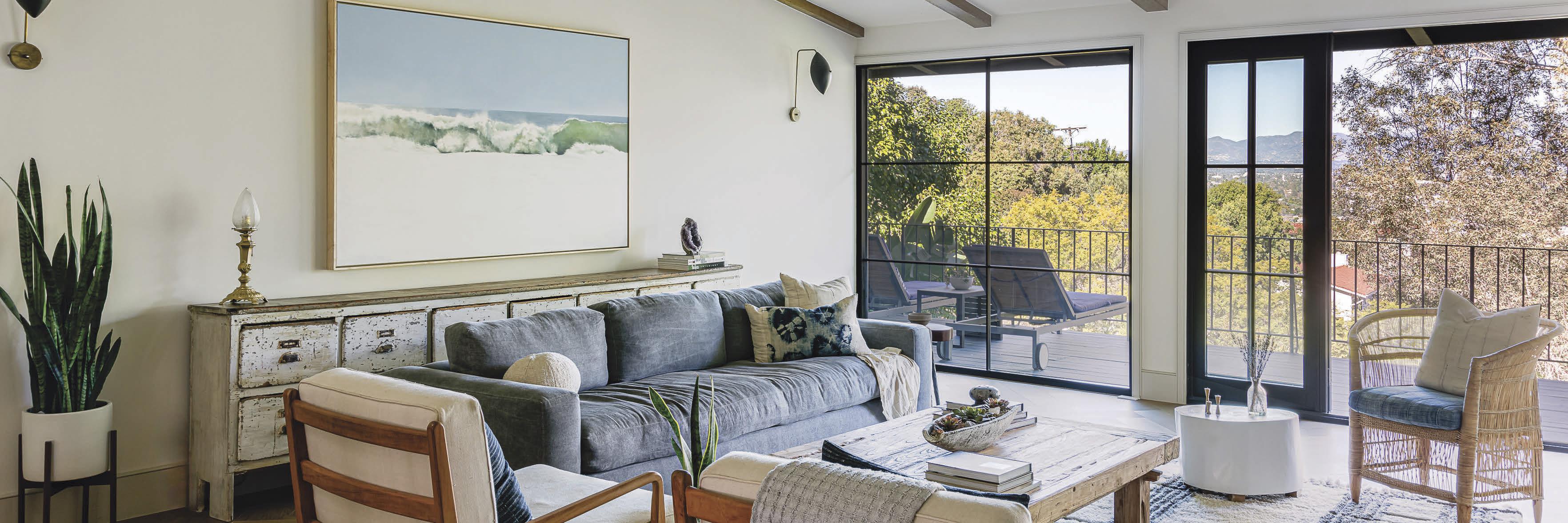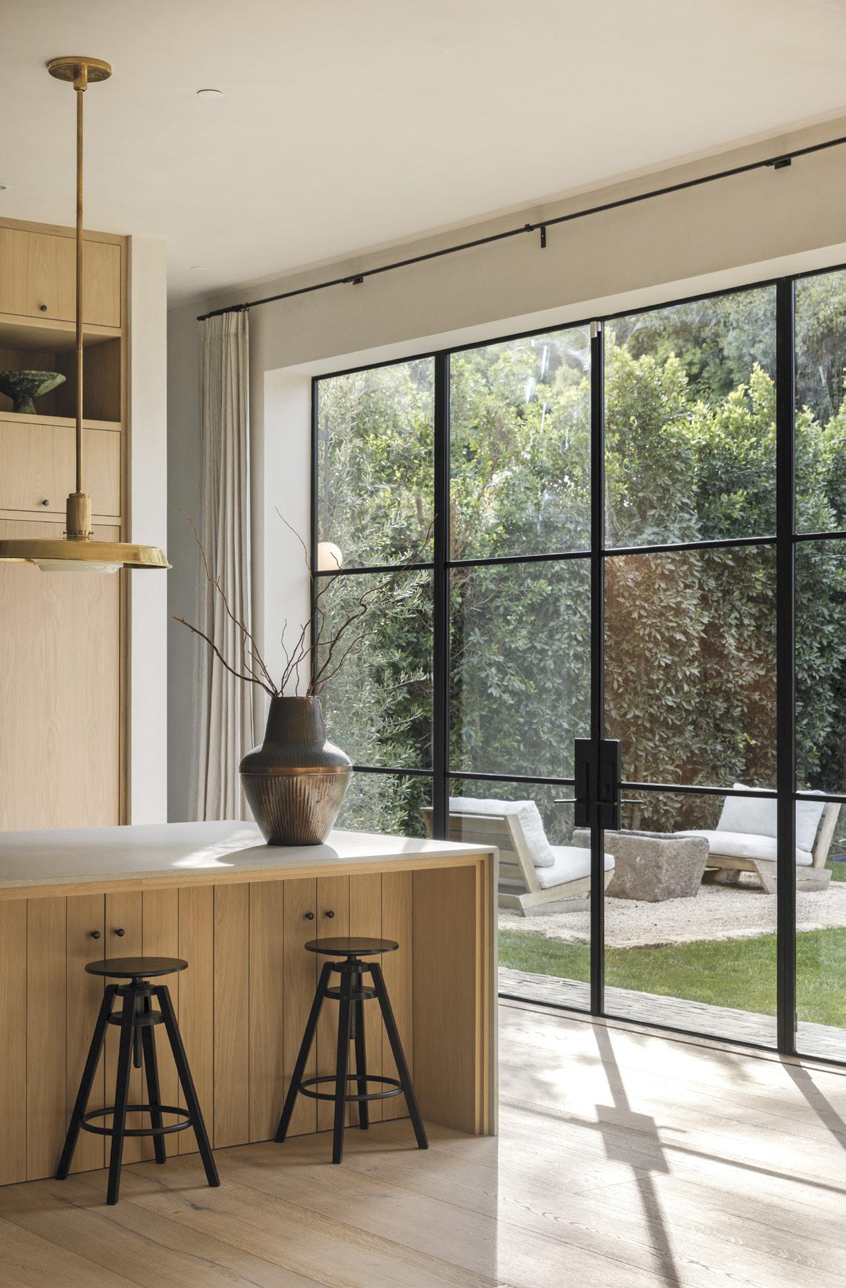 Just outside of the Fryman Canyon neighborhood, Rob has another project underway in the Silver Triangle section of Studio City. The lots are smaller in this neighborhood than in Fryman (just above it), and it has a mix of old and new homes. Still, the area is highly desirable due to its proximity to the shops and eateries on the Boulevard—walking distance, really. The contemporary home with a limestone/travertine façade on Viewcrest Road is more modest than the Fryman property, but Rob is equally proud of it. The three-bedroom home, with interior design by Jessica Nicastro, will hit the market this summer. The price tag will be around $6 million—fully furnished. The home has a handsome vibe with solid oak floors and cabinetry throughout. The walls, a warm, sandy hue, are created with a plaster from the British company Clayworks. The application, done in three separate coats, is a meticulous process.