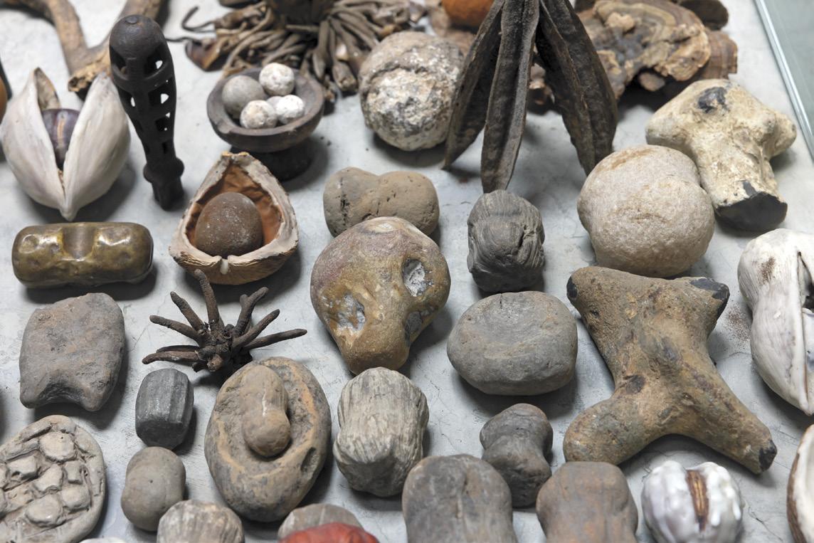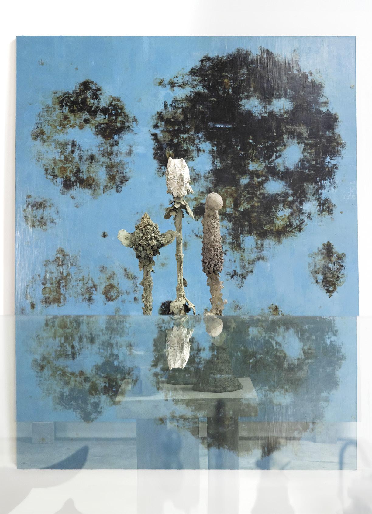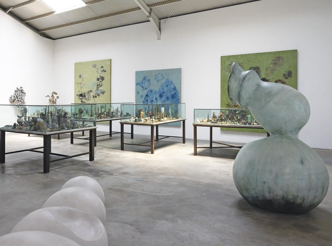 In multiple mediums over the past half century— painting, sculpture, drawing, photography and video— this nature-based connective tissue runs throughout, as if one piece is a natural extension of the other. Whether it be his showstopping Table of Contents—a series of large metal and glass viewing tables that display fragile, organic found objects; or his bronze sculptures, some freestanding, some wall-hung—the experience is visceral and poetic. You find yourself wanting to touch them, to experience their sensual, organic shapes firsthand. His paintings similarly draw you in. Though they seem abstract at first glance, a deeper look reveals that they too appear to be an extension of and inspired by the natural world.