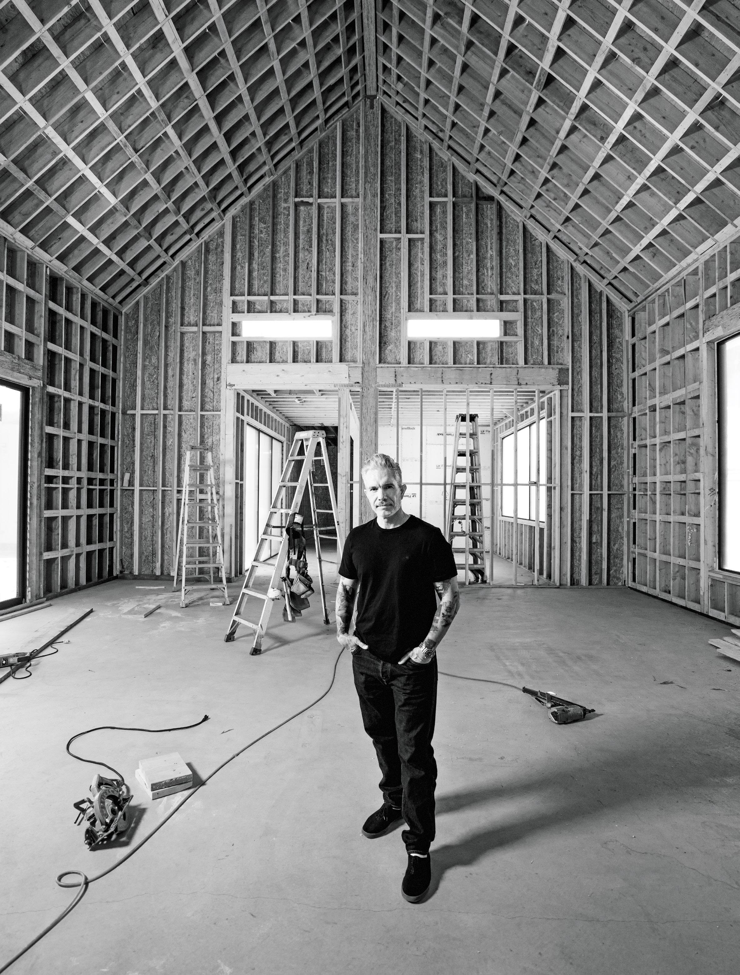 Rob Diaz in the 20,000-squarefoot, work-in-progress spec home, the former Alex Trebek estate, in Fryman Canyon.
