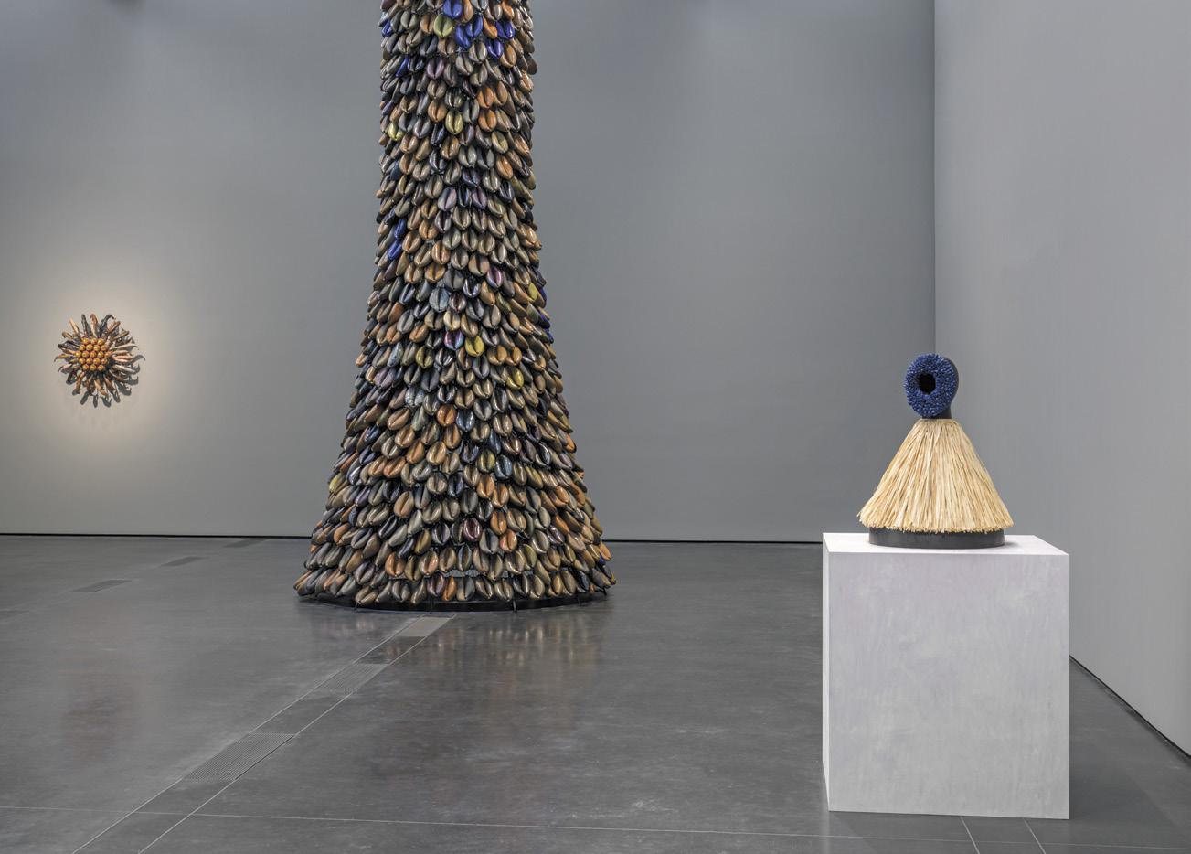 Charles next to an original plaster sculpture that was used to cast three bronze versions. It was inspired by “an inch-long appendage that grows in Pacific Ocean kelp beds.” Of the tall structure in the foreground, the artist says it is “open for interpretation. Growth, living structure and regeneration come to mind.”