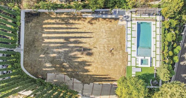 “We are building a full-blown compound. The style will be the Hamptons meets California lifestyle,” Rob shares. Construction is also underway behind the main house on two other structures, both fully clad in limestone: a wellness center with a steam room and sauna, and a gym. In between the main house and the two smaller structures: a 75-foot lap pool, set off by a row of recently planted mature olive trees.