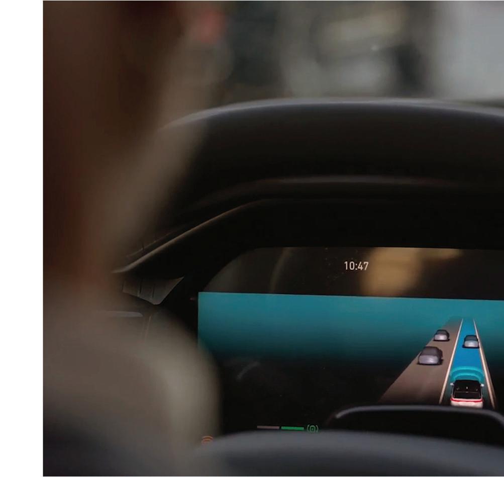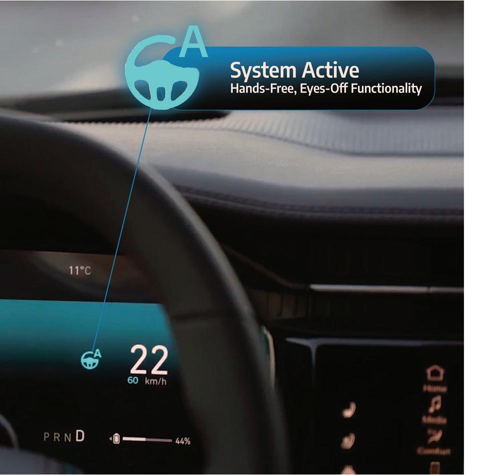 Future over-the-air updates could poten ally offer ‘hands-free and eyes-off ’ opera on at speeds of up to 59 mph as well as off-road automa on. It’s designed currently to provide lower levels of driver assistance funcons, including adap ve cruise control, lane centering and hands-off-the-wheel op ons, at higher speeds.