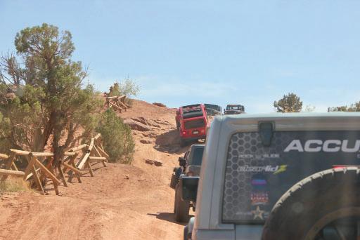 Groups will then head out to the trails for the day. Once a group arrives at a trail, they will partially deflate («air down») their tires to get better traction on sand or slick rock Once the air down is completed they will begin through the trail and depending on the trail and the number of stops, it can take anywhere from a few hours to all day