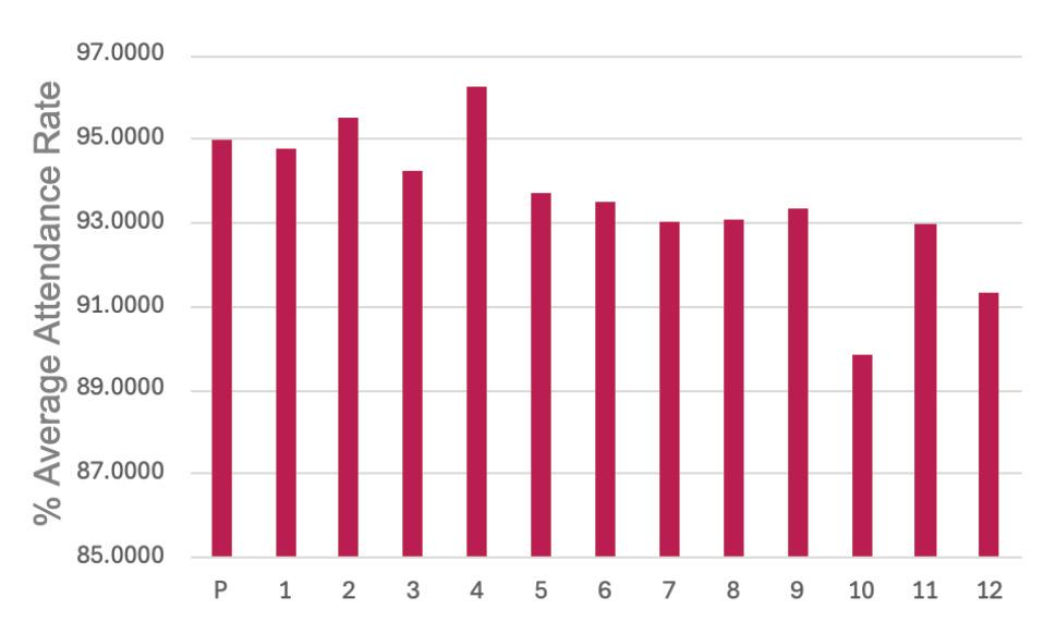 % Average Attendance Rate for MBC Kindergarten to Year 12
