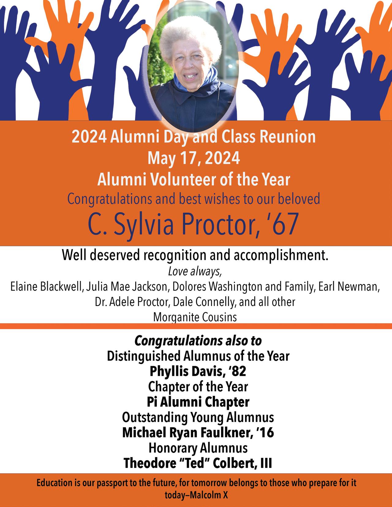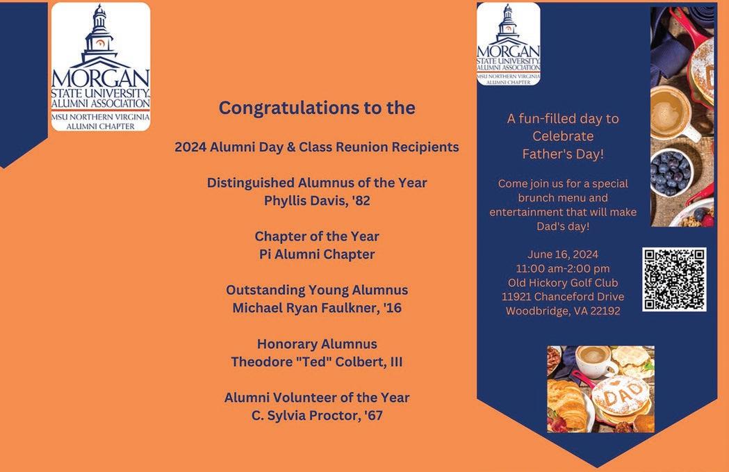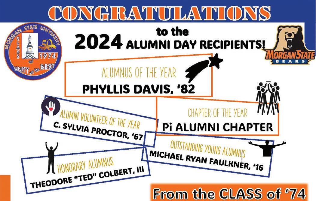 Congratulations To ALL 2024 Morgan State University Alumni Day & Class Reunion Recipients Especially