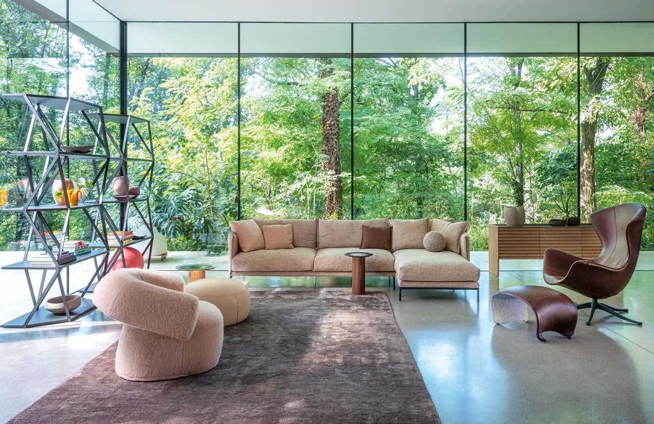 The spirit of the 1970s, the cultural revolution that in that era translated into furniture with a more informal approach, inspired Gruuve, a system that captures the nonconformist soul of the era and gives it the form of a free composition sofa. The fluid lines of the collection’s modules are designed to convey a sense of dynamism to the home and provide definite compositional flexibility.