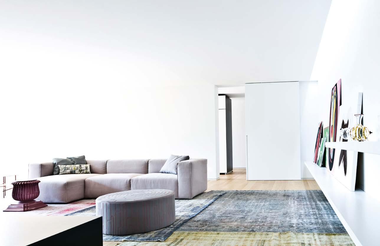 Lo spirito degli anni Settanta, la rivoluzione culturale che in quell’epoca si traduce in arredi dall’approccio più informale, ispirano Gruuve, sistema che cattura l’anima anticonformista dell’epoca e le dà la forma di un divano a composizione libera. Le linee fluide dei moduli della collezione sono pensate per trasmettere un senso di dinamicità alla casa e garantire una decisa flessibilità compositiva.