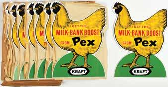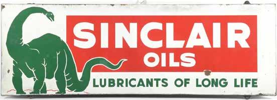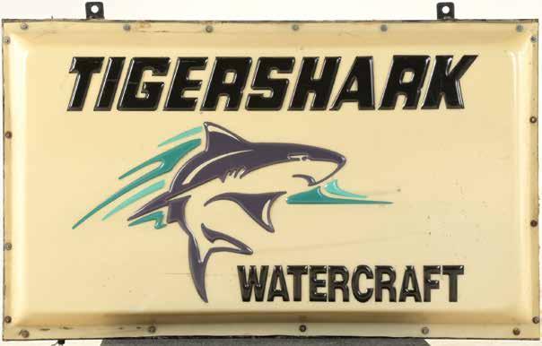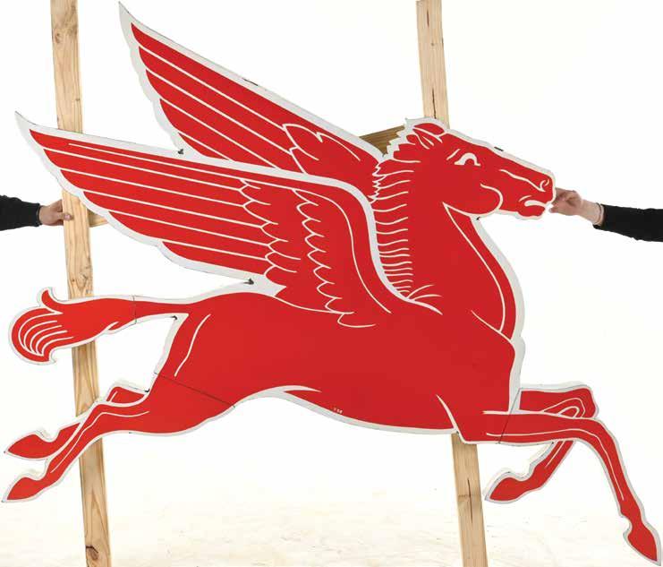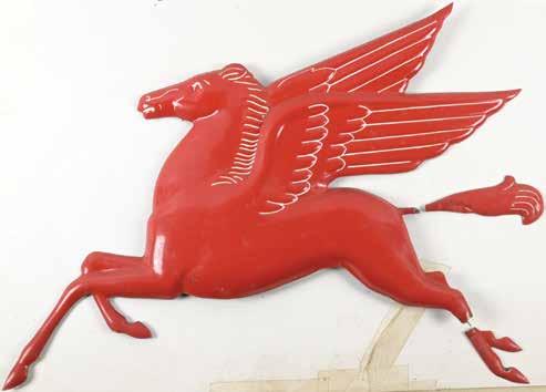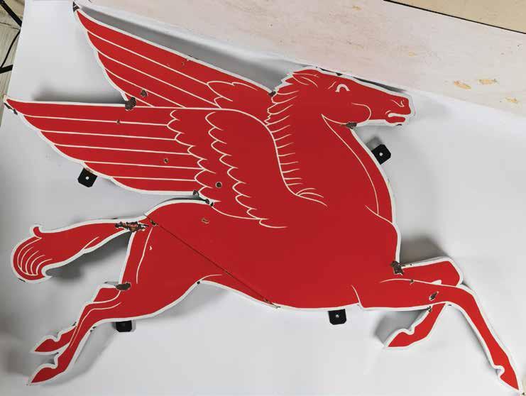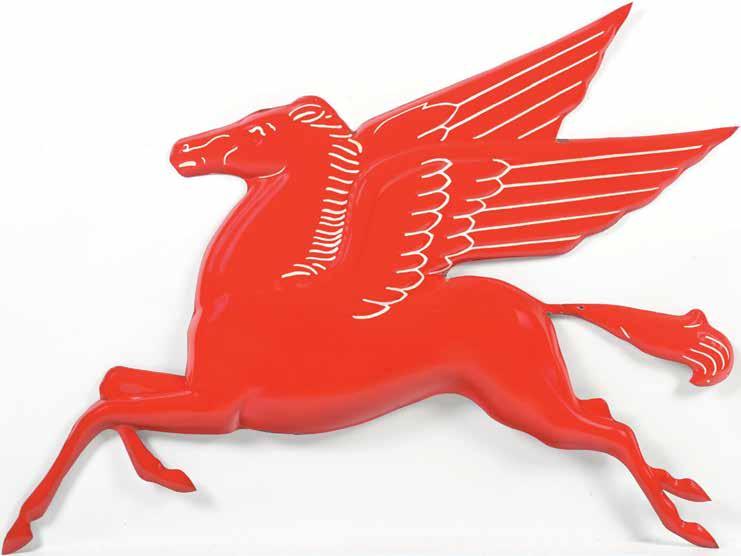 108-1/2” x 70”. SSP. C. 1950s. CONDITION: Sign shows outstanding color and gloss throughout the field with light areas of minor field chips. Sign shows heavier chipping in the outer field and at the outer edges of the legs and tail. Overall bright and glossy and well displaying. This is not a standard shippable item and will require 3rd party shipping or pickup arrangements to be made. (8.0).