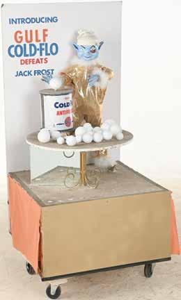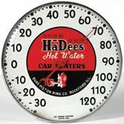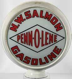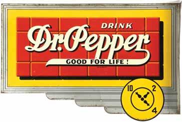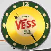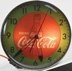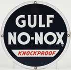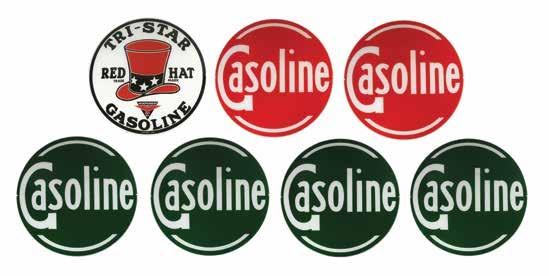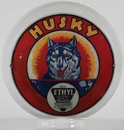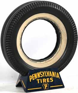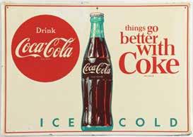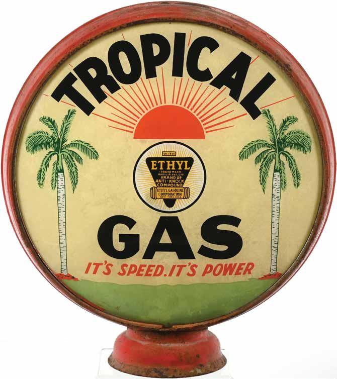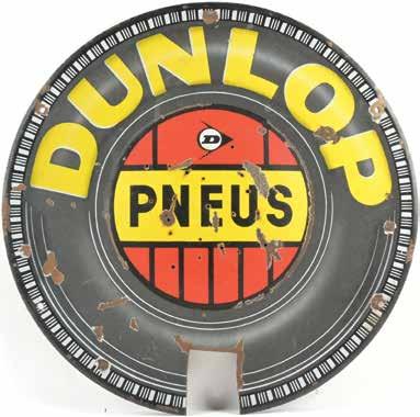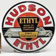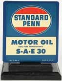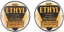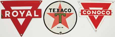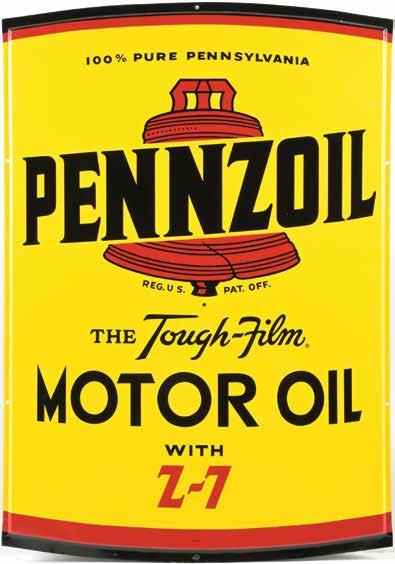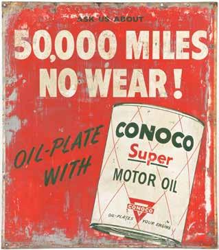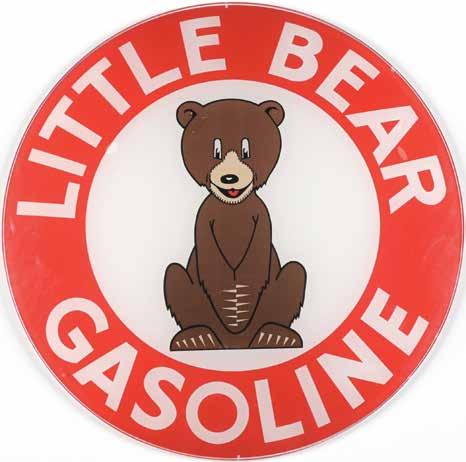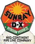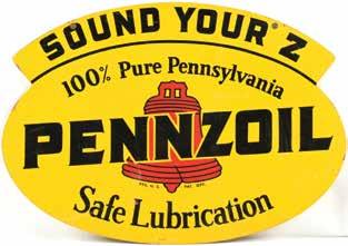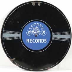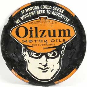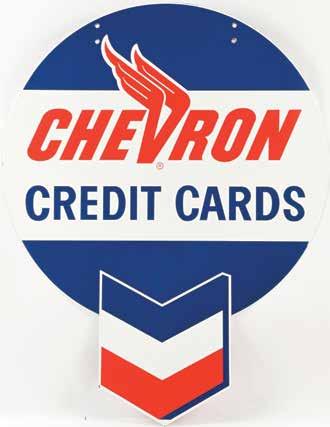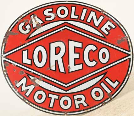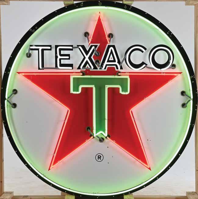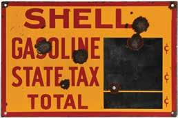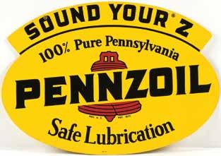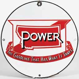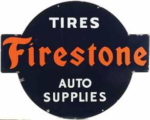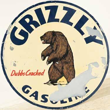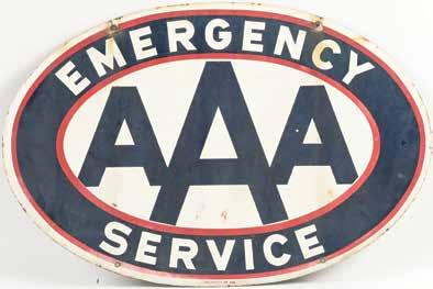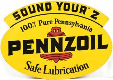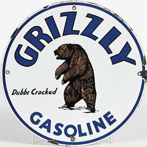 72” diam. DSP. C. 1950s. CONDITION: Sign shows excellent color and gloss throughout each side with moderate areas of light chipping, mostly in the outer field. Sign shows chipping at the mounting holes and along the black bordered outer edge. Overall displays well. This is not a standard shippable item and will require 3rd party shipping or pickup arrangements to be made. (8.0). 1,500 - 3,000