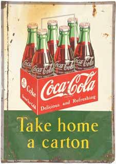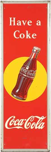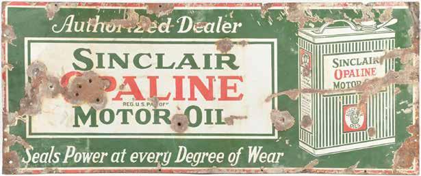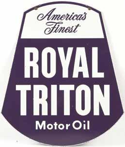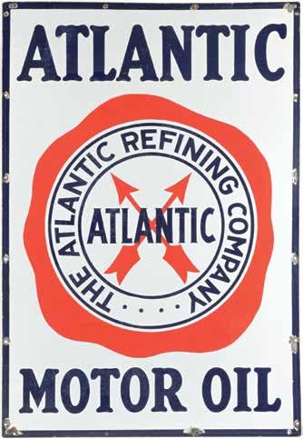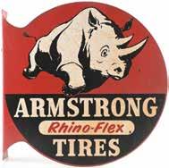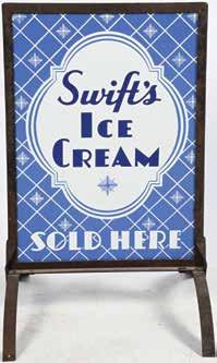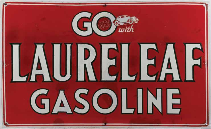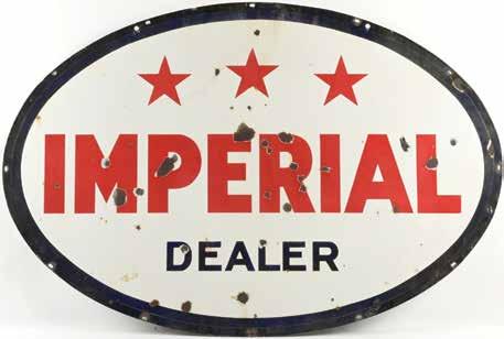 36” x 18”. DSP. C. 1930s. Maker marked “Litchfield”. CONDITION: Sign shows very good color and gloss throughout each side, with each side showing light areas of chipping in the inner and outer field. Sign shows excellent condition mounting holes, with moderate to heavy chipping along the outer edges. (7.9). 1,000 - 2,000