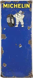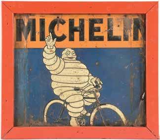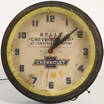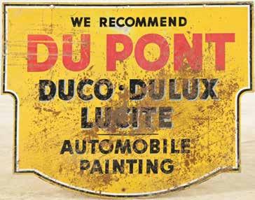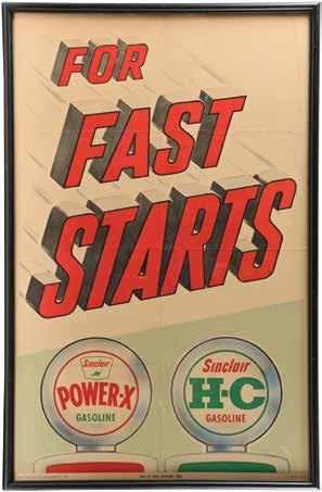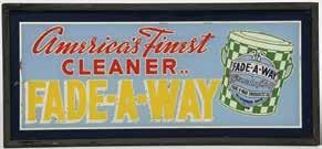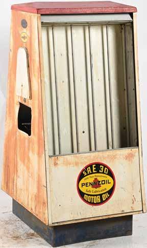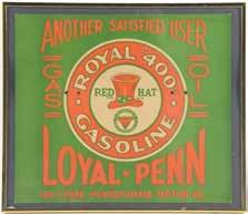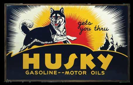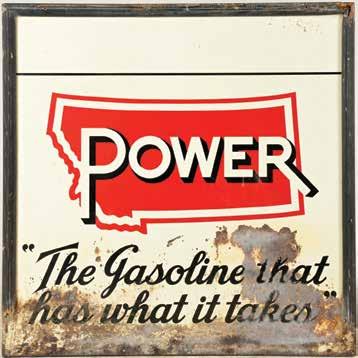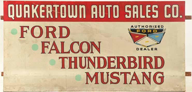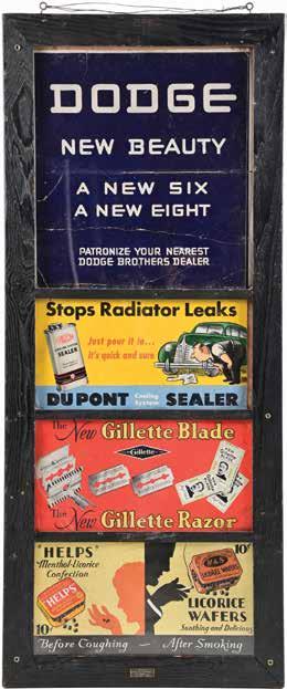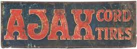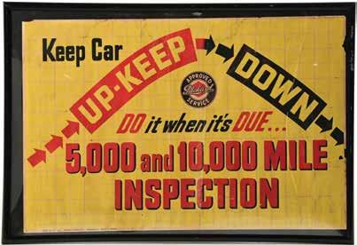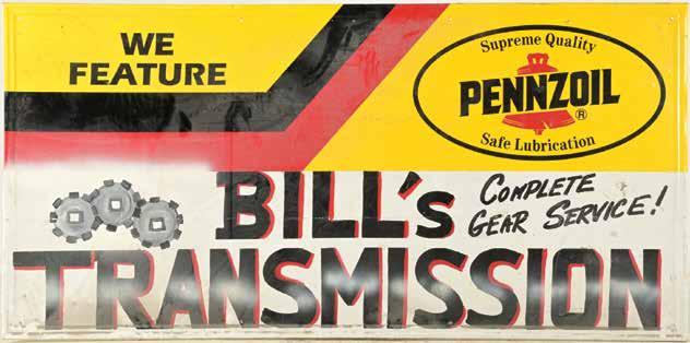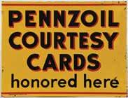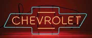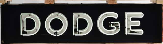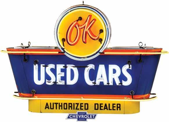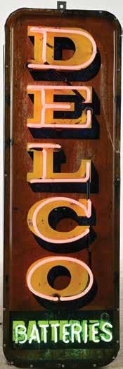 36” x 7” x 21 -1/2”. SSP. C. 1930s. CONDITION: Sign shows outstanding color and gloss throughout the field, with no notable field chipping. Sign shows chipping at three of the mounting holes with light wear along the outer edge. Sign shows neon outline around the car graphic with blue neon around the outer border. Sign is mounted on what appears to be the original metal can with a new metal backing attached. A bright and outstanding example. This is not a standard shippable item and will require 3rd party shipping or pickup arrangements to be made. (8.75+). 3,000 - 5,000
