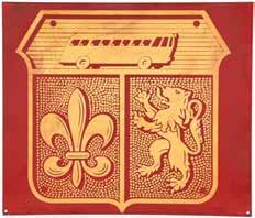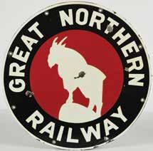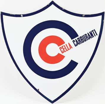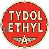 30” diam. DSP. Maker marked Simpson (Australian). CONDITION: Each side showing excellent color and gloss, with light areas of chipping in the outer field, as well as areas of moderate surface scratching. Sign shows seven drilled holes along the outer edge, with some areas of dullness in the blue and red. (8.0). 1,000 - 2,000