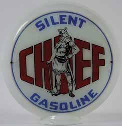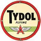 25 - 1/4” Dia. DSP. C. 1920s. CONDITION: A bright and glossy example of this iconic sign showing colonial minuteman graphic. Sign shows two areas of chipping in the inner field of each side, as well as two added nail holes along the outer edges, each showing light chips. Minor chipping at the mounting hole at the upper edge, but overall clean. An extremely glossy example of this highly sought-after sign. (8.0). 5,000 - 10,000