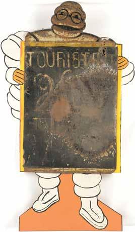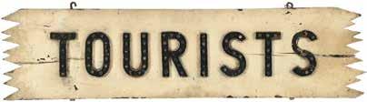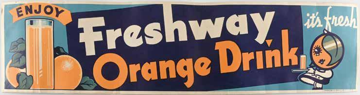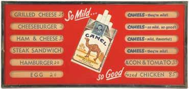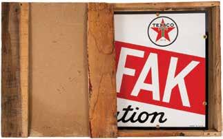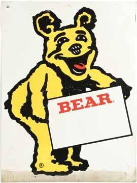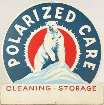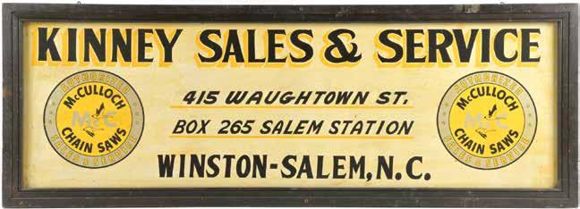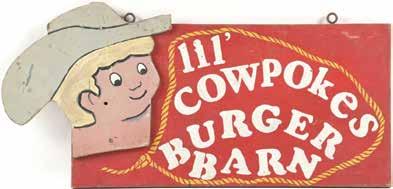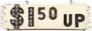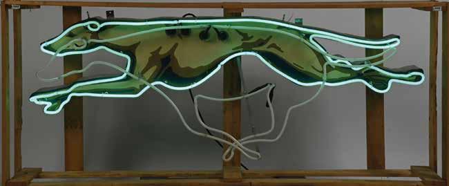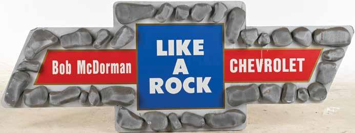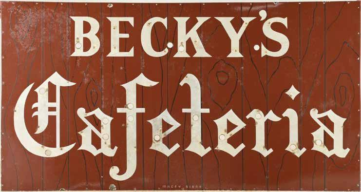 90” x 47.5”. SSP. C. 1950s. Maker marked “Maccy Signs”. CONDITION: Sign shows excellent color and gloss in the brown and black, with areas of dullness and discoloration in the white. Sign shows light chipping at the neon mounting holes, as well as the mounting holes along the outer edge. Sign should improve with a light cleaning. Overall large and impressive. This is not a standard shippable item and will require 3rd party shipping or pickup arrangements to be made. (7.75). 1,500 - 3,000