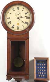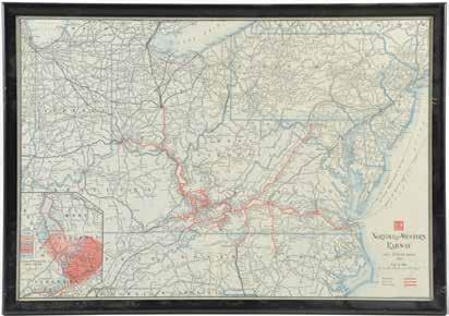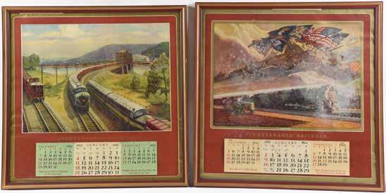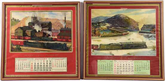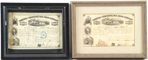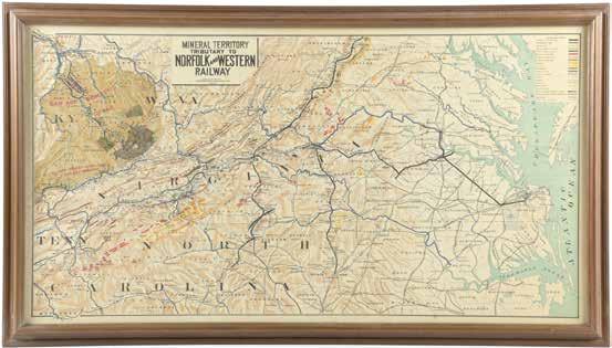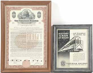 Largest: 15 - 1/4” x 35” x 5”. (A) A real nice Seth Thomas No. 2 Railroad regulator with a painted dial, containing Roman numerals and a real nice Virginian Railway logo at the 6 o’ clock position. The original blued spade hands and the seconds bit are intact. The case appears to be the mahogany version with veneers noted in generally good condition. The bezel glass is a wavy original, nice and clear. The bottom tablet also appears to be original wavy glass. The original wooden stick with original brass pendulum is inside the case and nicely wrapped. There is also a graduated brass beat scale noted at the bottom. (Very Good). (B) A nicely framed lot of 19 Virginian Railway crosstie date nails mounted on a blue flannel display. Date ranges from 1940 through 1958. (Very Good). (Very Good). 400 - 1,500