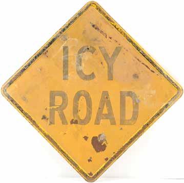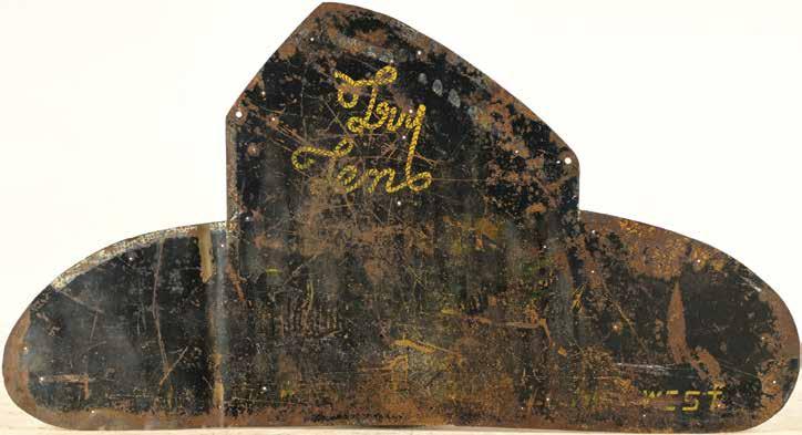 60” x 36”. DSP. Maker marked “Ingrahm Richardson”, dated 1931. CONDITION: Side 1 shows bright color and gloss throughout the field, with minor areas of light surface scratching, as well as a couple of light chips. Outer edge shows added nail holes with chipping. (8.0). Side 2 shows fair color and gloss, with a moderate amount of light chipping in the inner and outer field, as well as some surface staining. Outer edge showing light chipping with heavier wear along the top edge.(7.0). This is not a standard shippable item and will require 3rd party shipping or pickup arrangements to be made. (8.0, 7.0). 1,500 - 3,000