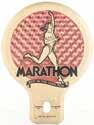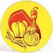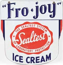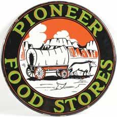 48-1/2” x 48”. SSP. C. 1930s. CONDITION: Fair color and gloss throughout the field, with light chipping in the inner and outer fields. Heavier chipping near the outer edge, but overall bright and glossy. Sign shows some removable staining and overall displays well. This is not a standard shippable item and will require 3rd party shipping or pickup arrangements to be made. (7.0).