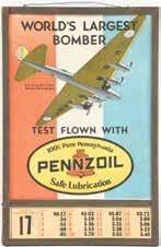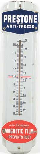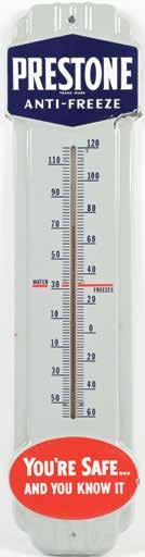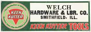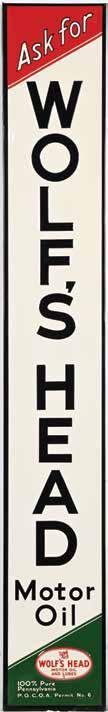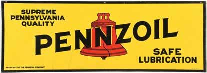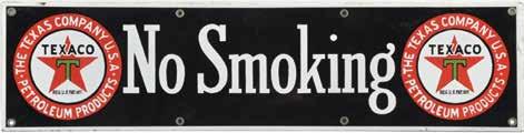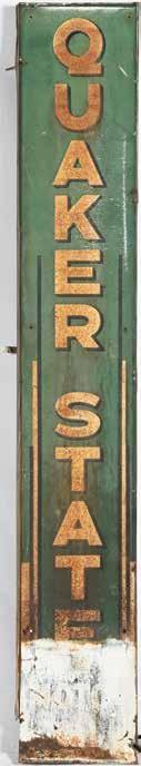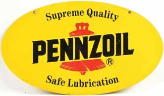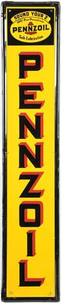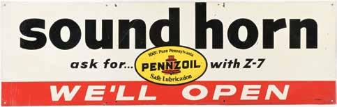 38” x 15”. DSP. C. 1930s. CONDITION: Sign shows excellent color and gloss throughout the field on each side. Sign shows two added mounting holes at the upper edge, each showing light chipping. Outer edges show minimal nicks throughout the upper and lower. Overall bright and glossy, and well displaying. (8.25). 1,000 - 2,000
