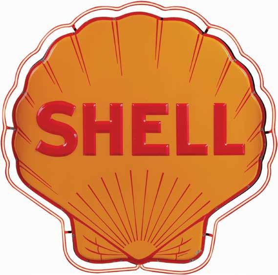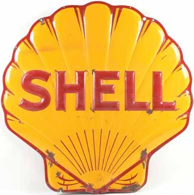 1002 - SHELL GASOLINE EMBOSSED PORCELAIN CLAM SHELL SIGN
