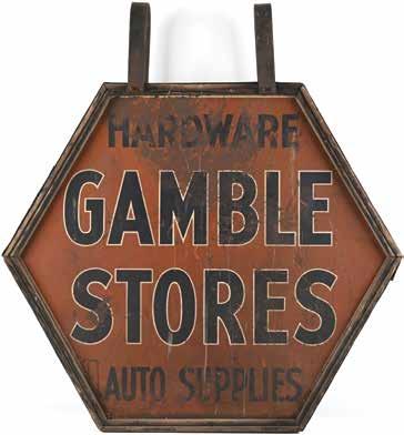 69” x 73-1/2”. DSP. Sign is maker marked “SPS”, dated 1966. CONDITION: Sign shows outstanding color and gloss throughout the field of each side, with each side showing a few light chips in the field. Outer edges are in excellent condition, showing light chipping at the points, but overall bright and displaying well. This is not a standard shippable item and will require 3rd party shipping or pickup arrangements to be made. (8.5+).
