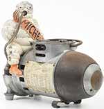 16” x 10” x 18”. A 12” diameter, cast bronze steam locomotive bell, complete with clapper and crank. The yoke is cast iron and affixes the bell with a hex nut. There are no apparent markings on the bell, which shows heavy black tarnish on the bronze. The cast iron yoke shows old, significantly deteriorated black paint. The clapper is intact and the bell has a nice ringing sound. This is not a standard shippable item and will require 3rd party shipping or pickup arrangements to be made. (Good). 400 - 1,000