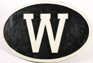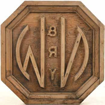 37” x 37”. Constructed to make the old curved N&W RY logo. Construction is white pine and plywood, nicely made and in good condition. This is not a standard shippable item and will require 3rd party shipping or pickup arrangements to be made. (6.0). 200 - 800