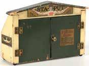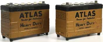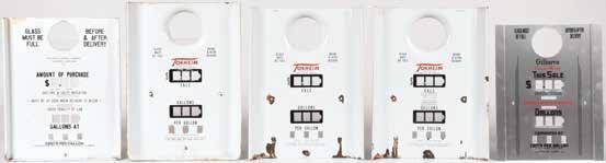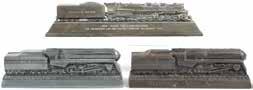 Largest: 20” x 18 - 1/2” x 10”. (A) A stamped steel, half-step box with no manufacturer’s tag, but probably a Morton. Included with this box is a new set of rubber feet. (Fair). (B) An aluminum full passenger step box, not railroad marked. Original rubber feet appear to be in good condition and there is no apparent damage to the unit. (Very Good). (C) A cast iron coal stove ash shovel, embossed “N&W” in the handle. Shovel shows significant heavy pitting from age and use and is in rusty condition. (D) A cast iron locomotive door stop with red painted accents. (Good). (Good). 300 - 600
