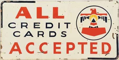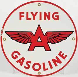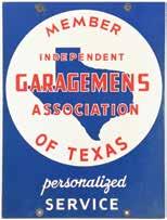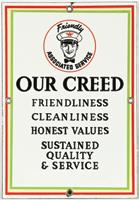 1009 - RARE ASSOCIATED FLYING A “OUR CREED” PORCELAIN SERVICE STATION SIGN W/ ATTENDANT VARIATION. 11.75” x 7.75”. AGS CERTIFIED #11651. SSP. C. 1930s Porcelain Sign for Associated Gasoline showing “Our Creed” with a variation of the Attendant graphic not often seen on this sign. CONDITION: Sign shows brilliant color and gloss throughout with a very minimal amount of faint field wear. Sign shows all original grommets intact with light nicks behind the top and bottom grommet. The outer edge is very clean showing just minimal storage wear. Most likely an N.O.S. example. (AGS CERTIFIED GRADE 91). 2,000 - 3,500