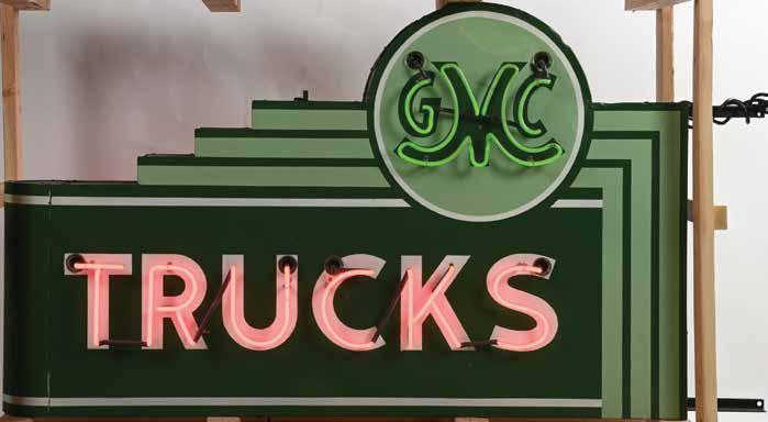1014 - GMC TRUCKS COMPLETE PORCELAIN NEON SIGN W/ BULLNOSE ATTACHMENT