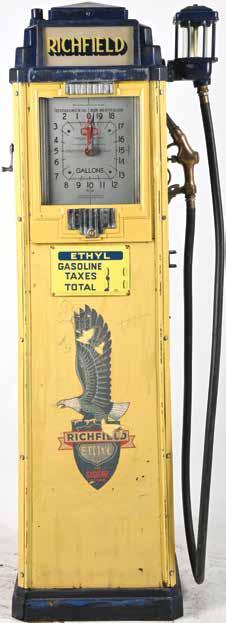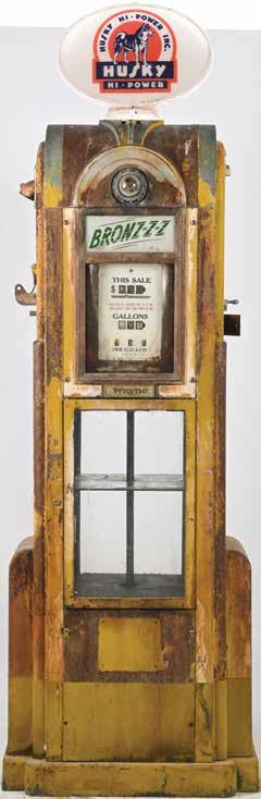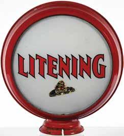 82” x 14” x 45”. Two single-sided porcelain signs mounted back to back with original bullnose attachment. CONDITION: Sign shows excellent color and gloss throughout each side, with numerous areas of nicely done touch-ups in the inner and outer fields. Sign shows area of touch-up along the outer edges, with minor areas of touch-up on the bullnose attachment. Sign lights up in pink and green on each side, and is mounted on what appears to be the original metal can, which has been repainted in black. An excellent displaying example. This is not a standard shippable item and will require 3rd party shipping or pickup arrangements to be made. (8.0). 8,000 - 16,000
