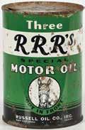 Largest: 4 - 1/2” D. x 30” T. Four oilers are marked “N&W Rwy Co”. Some are painted black, one is painted red, and another has light rust patina. A fifth is unmarked, but has been nickel plated. All have minor dings and show normal railroad use. (Good).