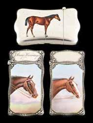 Largest: 2 - 1/2” x 1 - 1/2”. (A) Enamel sailboat by Sampson & Mordan. (B) Enamel of David Copperfield, marked “M. R. Micawber,” Birmingham, 1904. (C) Dog enamel by Canter Howe. CONDITION: All with strong hinges, no damage or repairs. (Excellent) 800 - 2,500