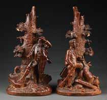 Each: 7 - 1/4” x 5” x 13 - 1/2”. Both have detailed images of men hunting. Some of the wood tree branches and the end of the man’s rifle are missing. (Excellent) 200 - 500