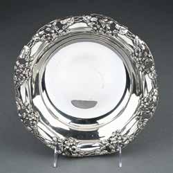 Largest: 1 - 1/2” Dia. (A) Face safe by Gorham, dated 1884. (B) Miniature face by Whiting. No tension bar. (C) Miniature Japanese face by Gorham. (D) Man on the moon face with bat on back by Sheibler. (E) Small safe by Shiebler. (Excellent) 700 - 1,400